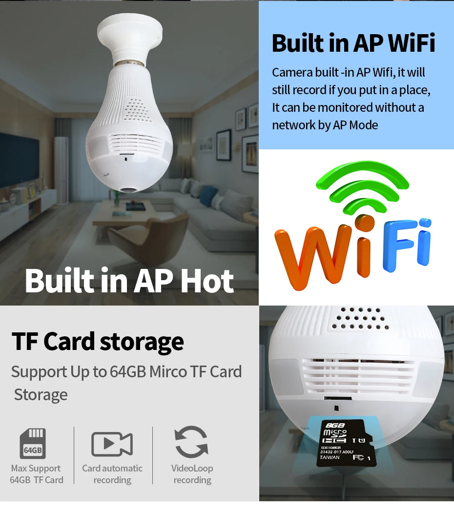 【 360 ° панорамный 】: оснащен 360 ° наблюдения, каждый угол или ваш дом может быть достигнут