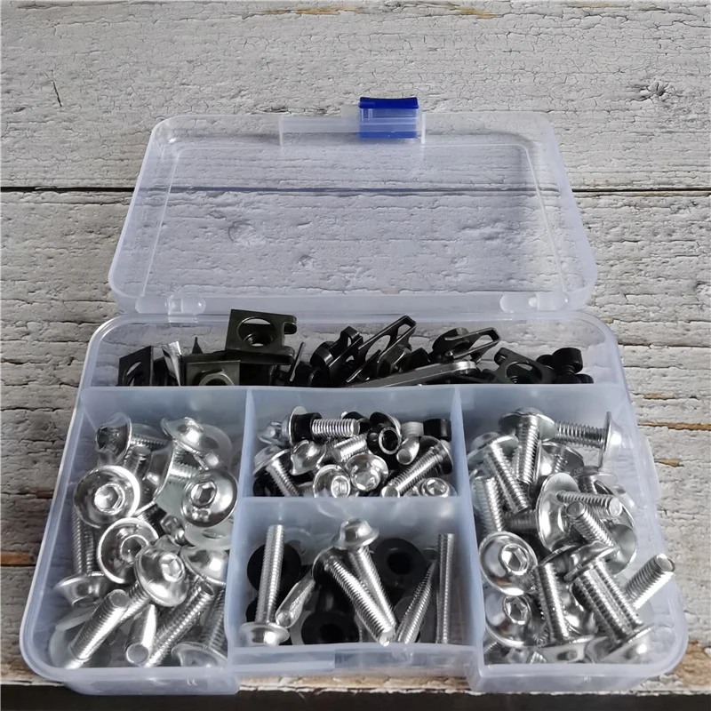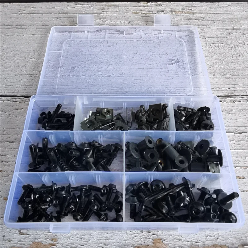 Всего: 177 шт.Болты M6 (6x40 мм) x 5Болты M6 (6x16 мм) x 20Болты M6 (6x20 мм) x 20Болты M5 (5x16 мм) x 20Болты M5 (5x25 мм) x 8Балочная установка для винтов (4,8*20 мм) x 4Зажимы скорости x 14Мойки M6 x 20Мойки M5 x 20M6 пластиковая стойка x 20M5 пластиковая стойка x 20Гайка колодца x 4Гаечный ключ x 2Всего: 223 шт.Болт M6 (M6 x 40 мм) x5Болт M6 (M6 x 16 мм) x20Болт M6 (M6 x 20 мм) x20Болт M5 (M5 x 16 мм) x30Болт M5 (M5 x 25 мм) x8Само-самонарезающие шурупы (4,8*20) x4Армейский зеленый зажим для мамы M6x14M5 резиновая гайка x10Нейлоновая шайба 6 мм x20Нейлоновая Шайба 5 мм x30Зажим для мамы M4.2x10Пластиковая пряжка (M4 * 20)x10Пластиковая пряжка (M5 * 23)x10M4 держатель нажимной штифт (4x20 мм) x10M5 держатель нажимной штифт (5x23 мм) x10Само-самонарезающие шурупы (4,2*16) x10Гаечный ключ x 2Примечание: