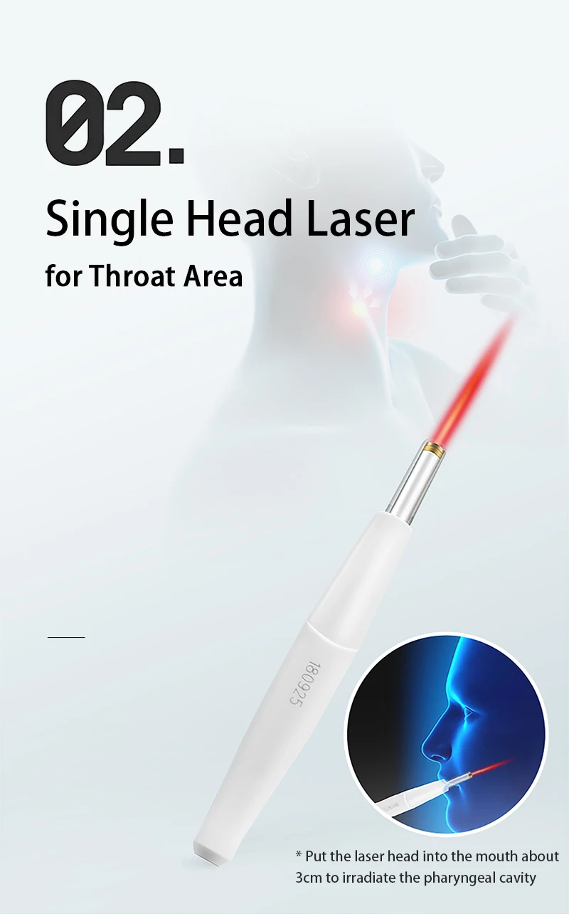 * Одна лазерная головка помещается во рту около 3 см для облучения полости глотки.