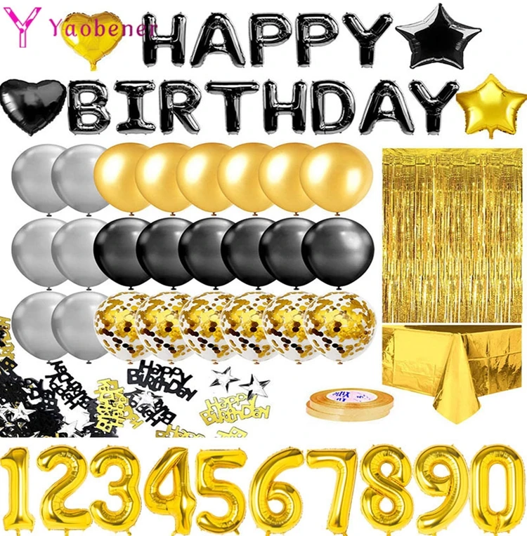 С днем рождения баннер, 12 шт конфетти шары, 12 шт розового золота шары, 1 шт Розовое золото бахрома занавеска, 1 шт скатерть, 4 шт фольги шары (сердце и звезда), 10 г розовое золото конфетти, 1 солома, ленты длиной 20 м.