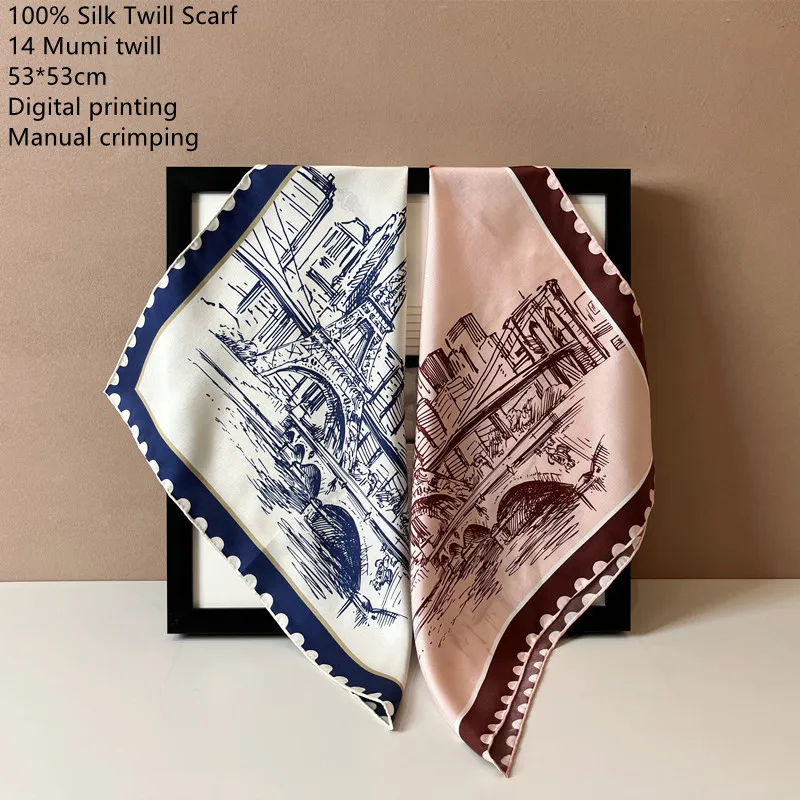 Шелковая саржа отличается от традиционной гладкой атласной ткани из крепа. Он имеет четкую саржевую текстуру, прочную и плотную руку и легко вогнутый и выпуклый. Обычно используется как Высококачественная шелковая ткань для шарфа. Шелковая саржа, как правило, является тканью высококачественных шелковых шарфов, а наш шарф изготовлен из элитных шелковых шарфов, которые отличаются от традиционного Шелкового креп-сатина + машинной завивки. Такие шарфы, как правило, дороже. Некоторые клиенты не знают их и считают, что они подделки. Ха-ха, это не так. Как правило, такие шарфы стоят дороже и их трудно продать, поэтому многие фабрики их не производят.