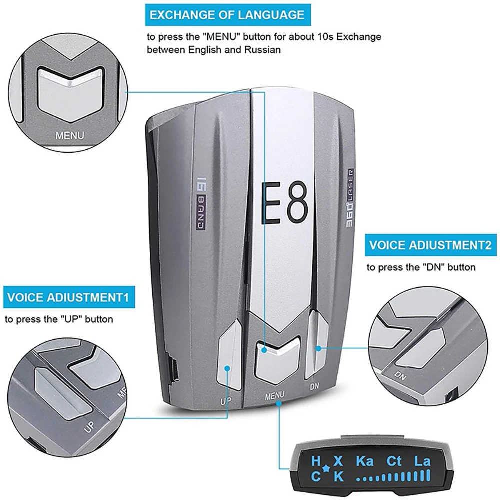 Автомобильный радар-детектор, скорость потока, анти-лазерный сигнал обнаружения, электронная система голосовой сигнализации для собак, светодиодный дисплей, поддержка русского языка