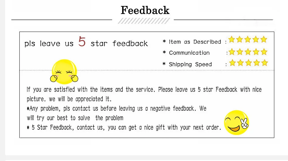 5. Если Товар потерян или поврежден, пожалуйста, сначала свяжитесь с нами, и, пожалуйста, не оставляйте нам негативные или нейтральные отзывы, мы обещаем, что постараемся