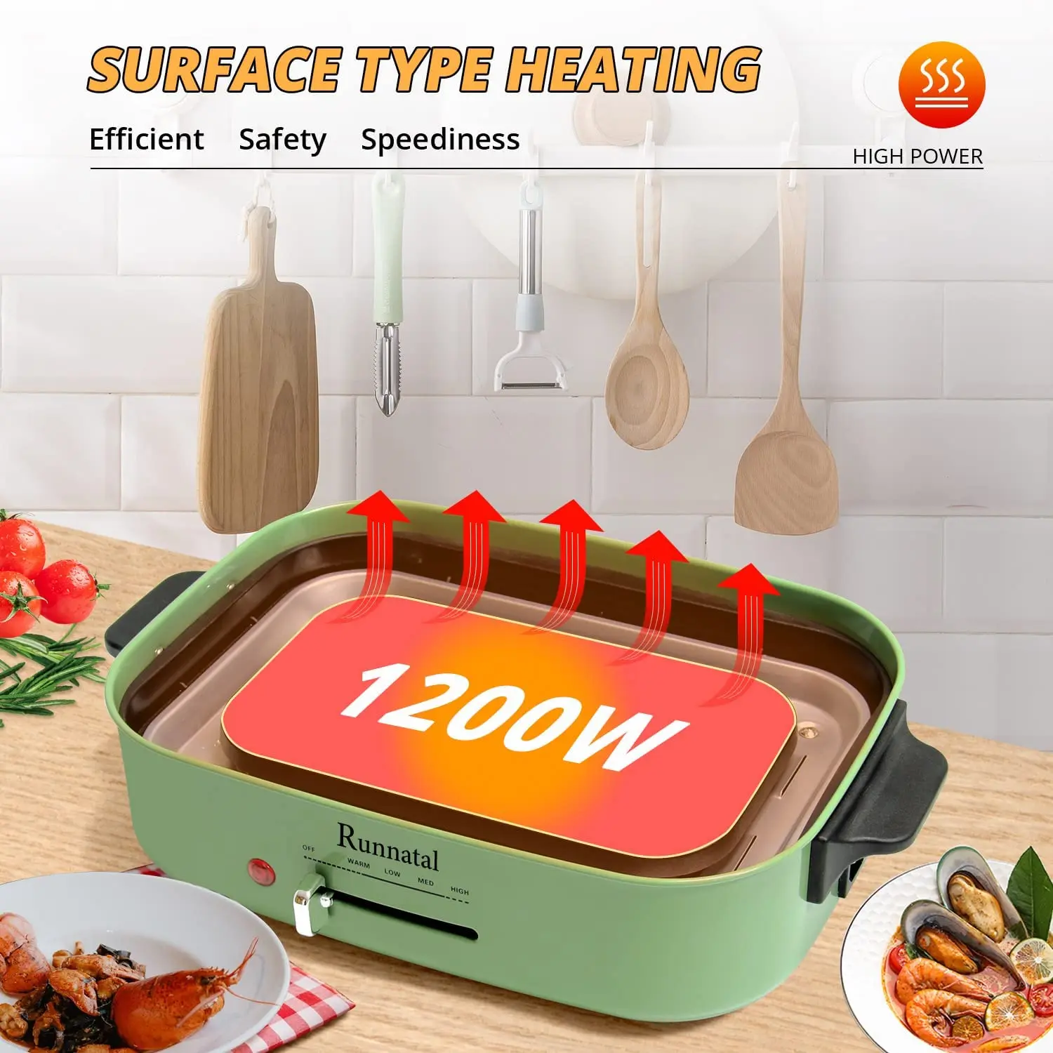 【 Нагреватель плиты этого продукта может равномерно нагревать еду, предотвращая горячие пятна и выгоревшую еду. ETL перечислены; PFOA и BPA бесплатно.