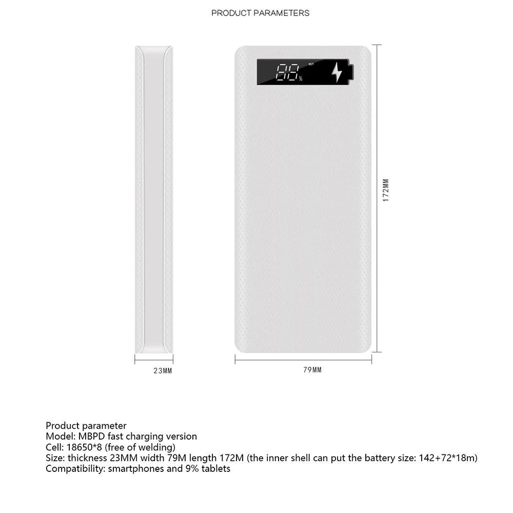 Package Included:5V Dual USB 8*18650 Power Bank Case (Batteries not included)