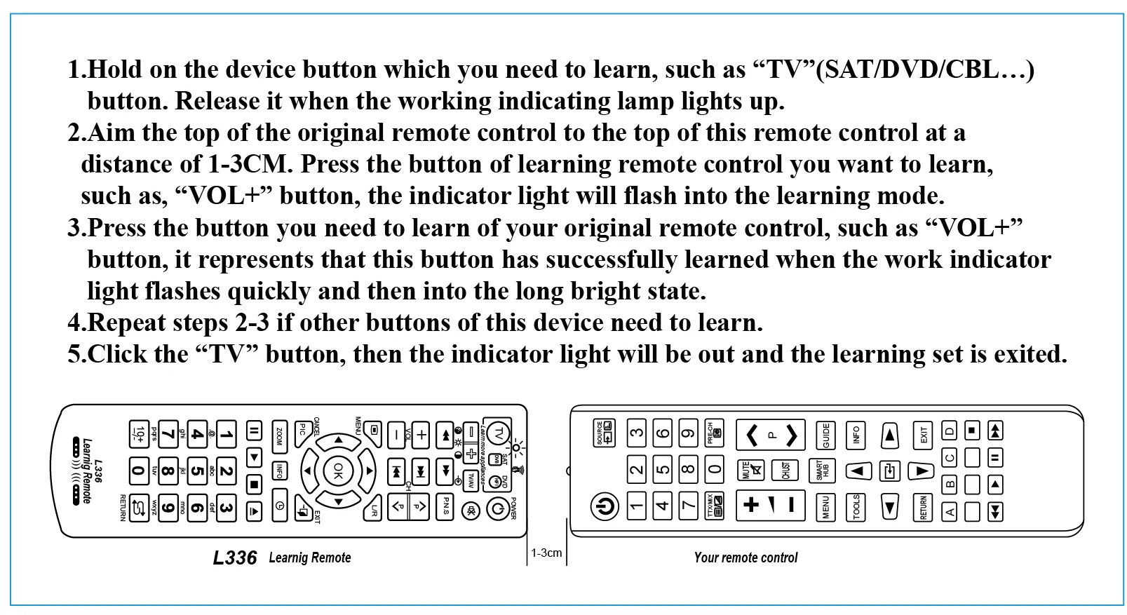 1 шт. универсальный Смарт L336 ИК пульт дистанционного управления с функцией обучения копия для ТВ CBL DVD SAT STB DVB HIFI TV BOX VCR STR-T Control le