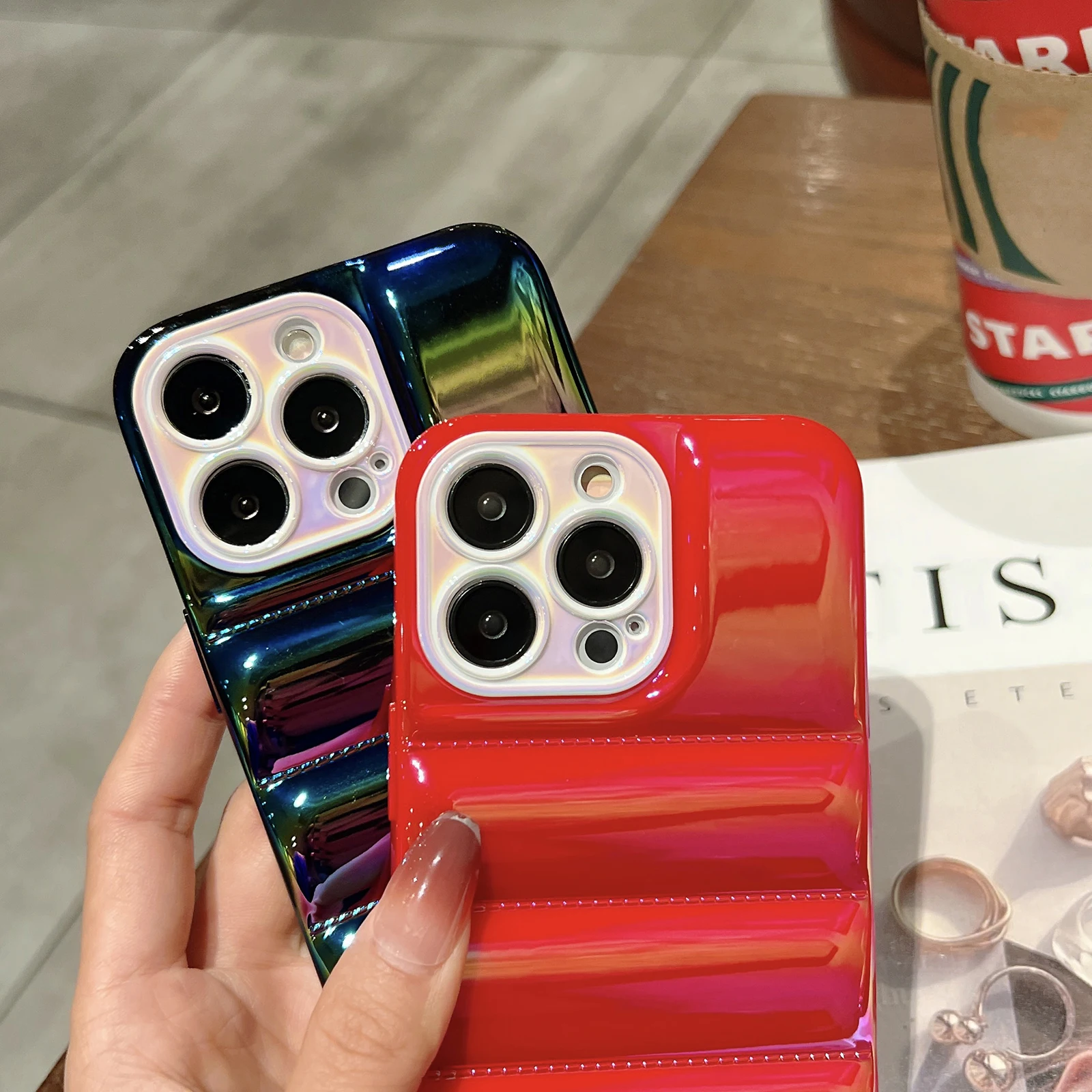 Голографическая Лазерная зимняя пуховая куртка чехол для iPhone 13 Pro Max 12 Pro Max 11 Pro Max цветная Защитная крышка для объектива