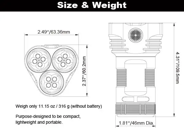 Головка фонарика треугольной формы и ультра-компактный корпус фонарика позволяют конечным пользователям управлять MK34II легко одной рукой.