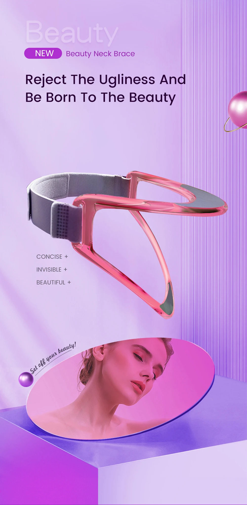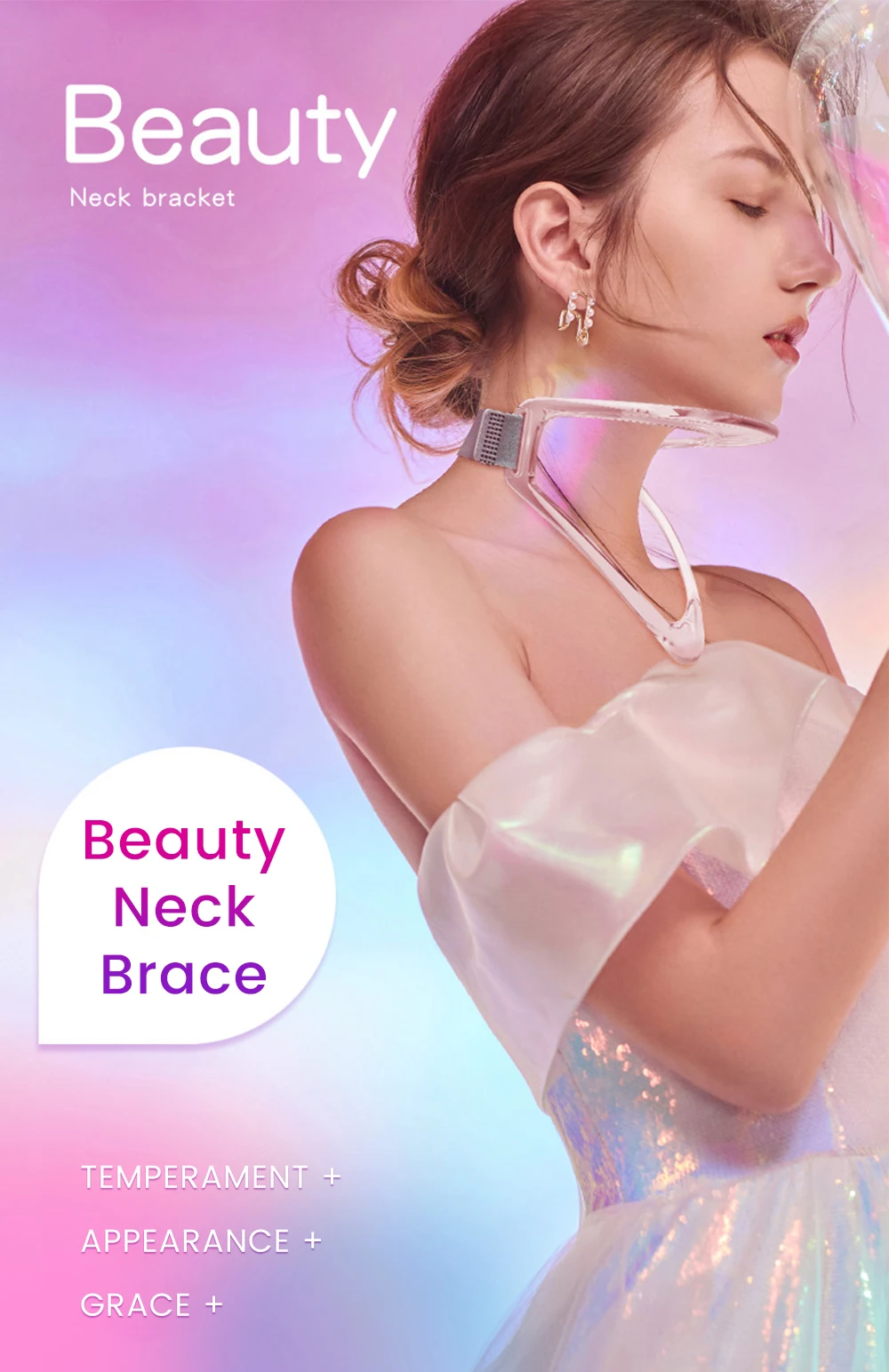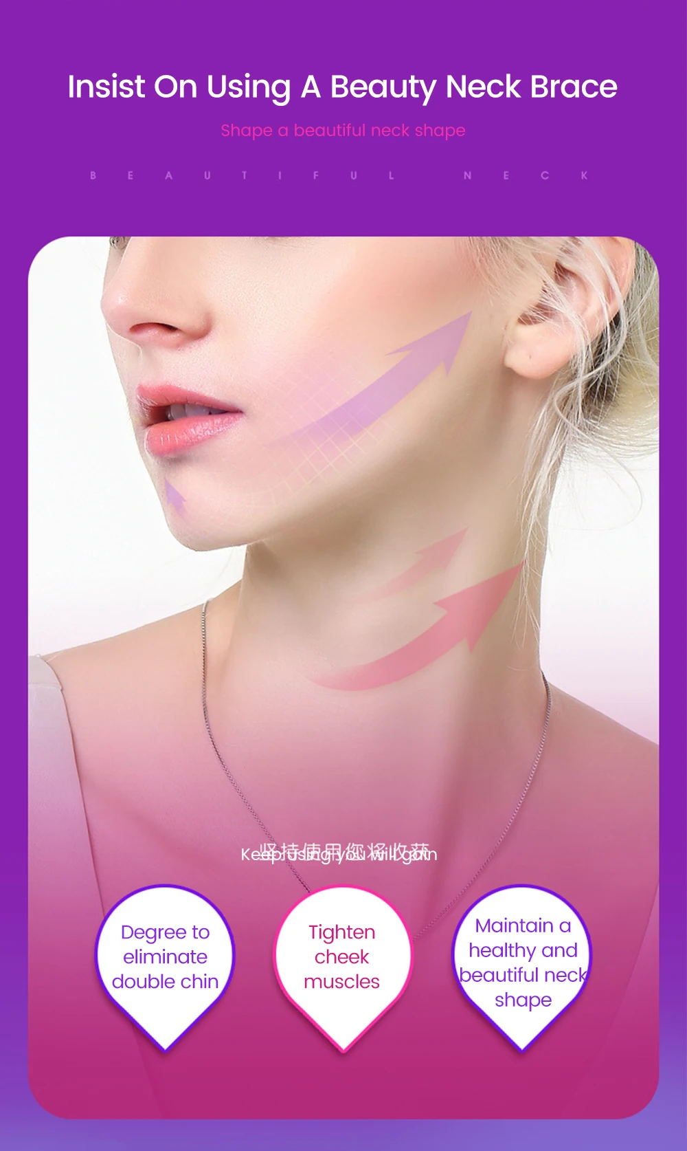 Функция: поддерживает шею, снимает чрезмерное Гиперрасширение; Устраняет двойной подбородок, подтягивает мышцы щек, поддерживает здоровую и красивую форму шеи