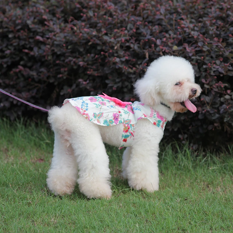 Pet princess dress,polyester material,comfortable and breathable fabric.The appearance of the rose lattice pattern looks very sweet.The pet is more sweet and cute after wearing it.