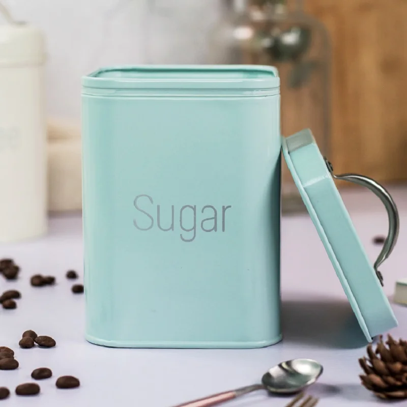 Название: 3 шт./компл. 10,6*10,6*14 см кремово-белый голубой-синяя квадратная банка с крышкой кофе чайник для чая с Caddy сахарница для сухого молока с уплотнительным кольцом влагостойкий бытовой 2021NEW Горячая Прекрасный подарок