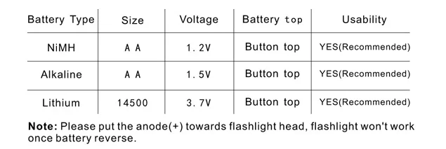 Аккумулятор: 1 * AA / 14500 (В комплект входит Battery)