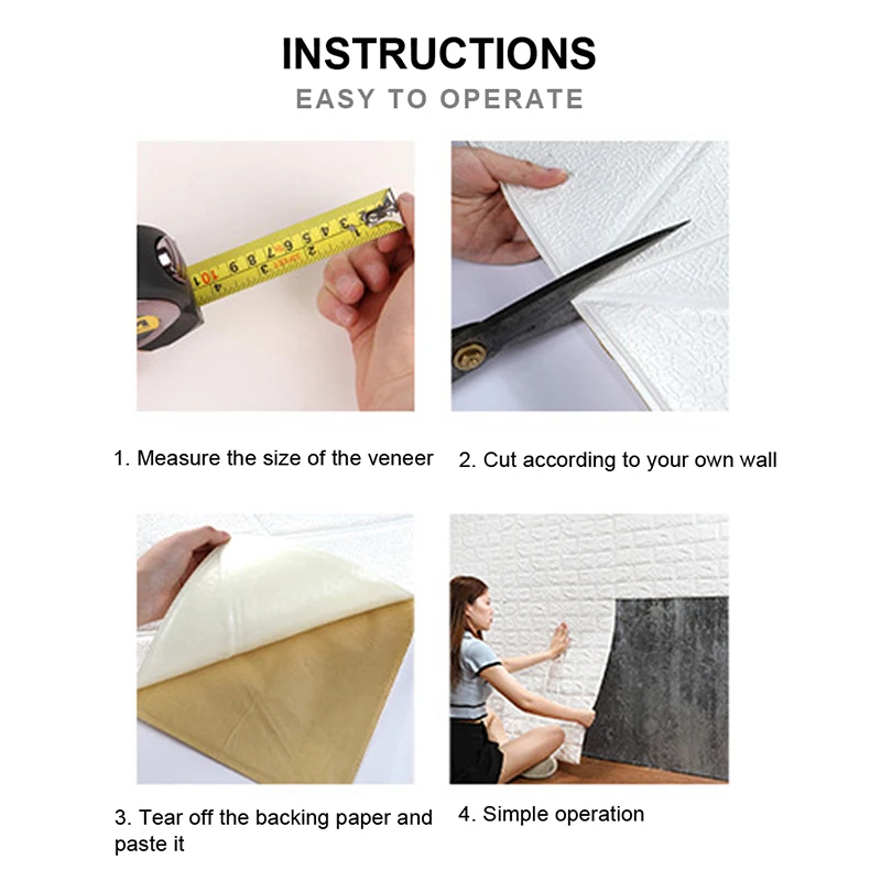 ** Многофункциональность: кирпичные обои можно безопасно установить в любую комнату, например, в гостиную, спальню, детские комнаты, кухонные стены, офис и т. д., чтобы создать индивидуальный внешний вид.