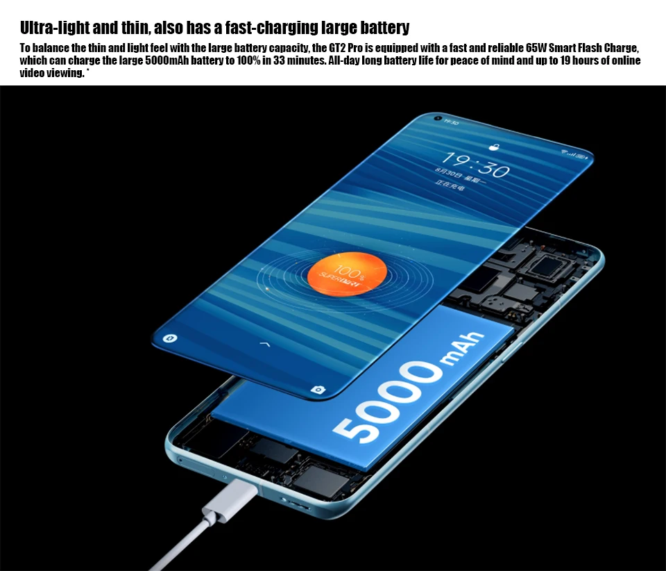 Быстрая зарядка 65 Вт, 100% за 33 мин (рекламируется)