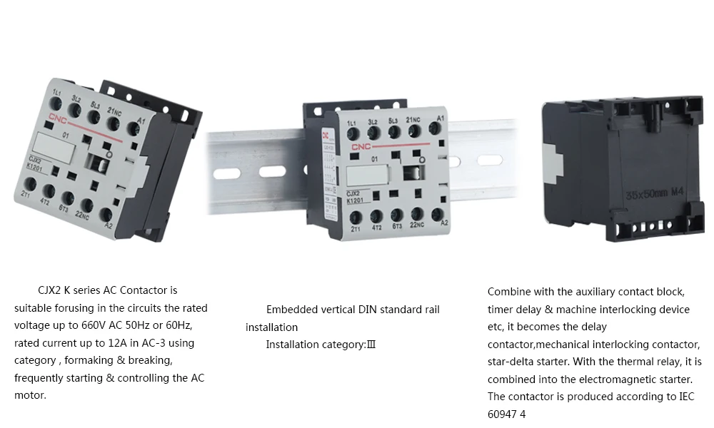 Контактор переменного тока серии CJX2-K подходит для использования в цепях номинальное напряжение до