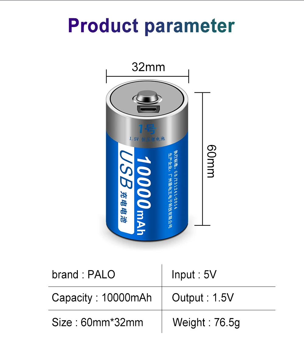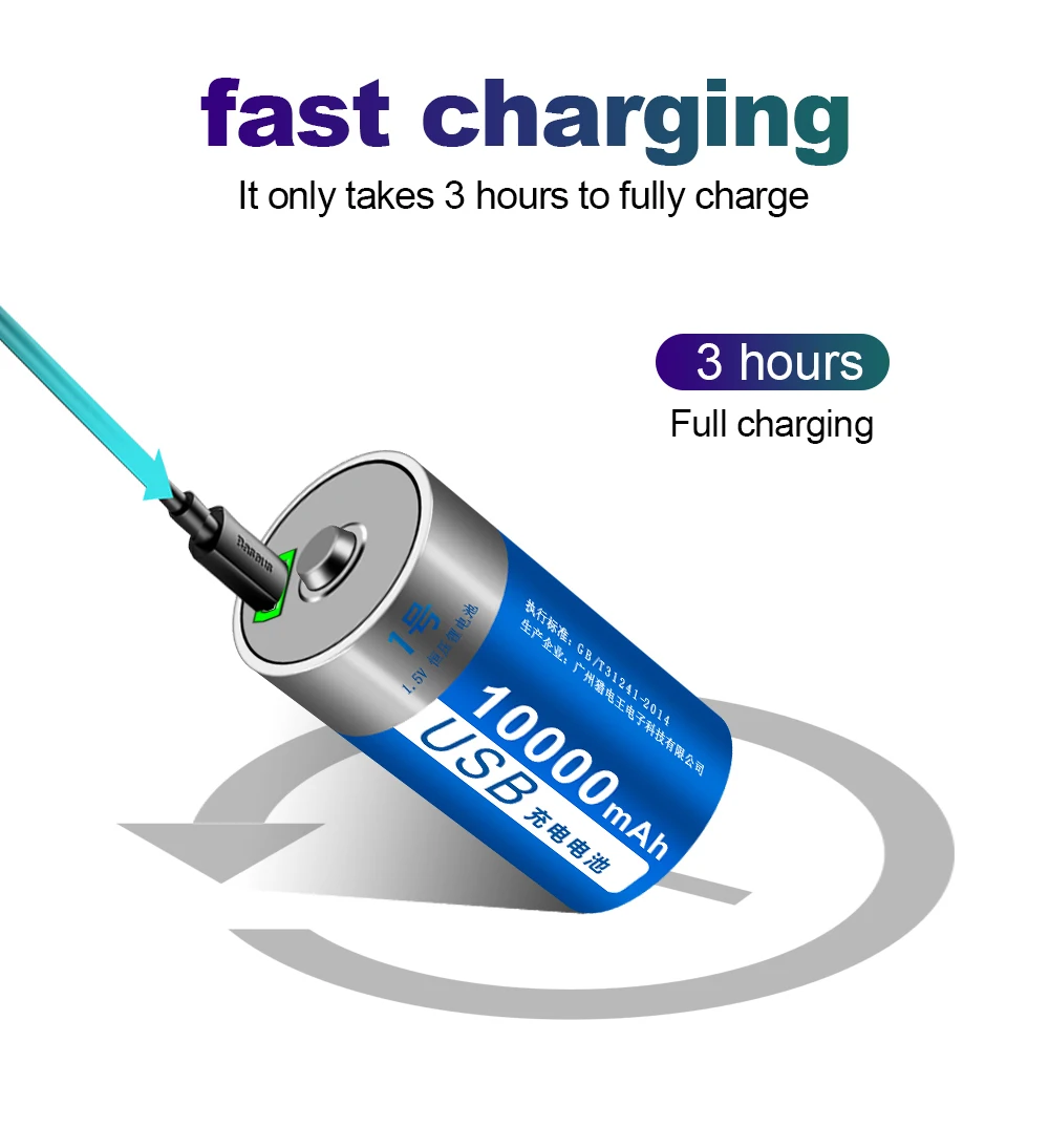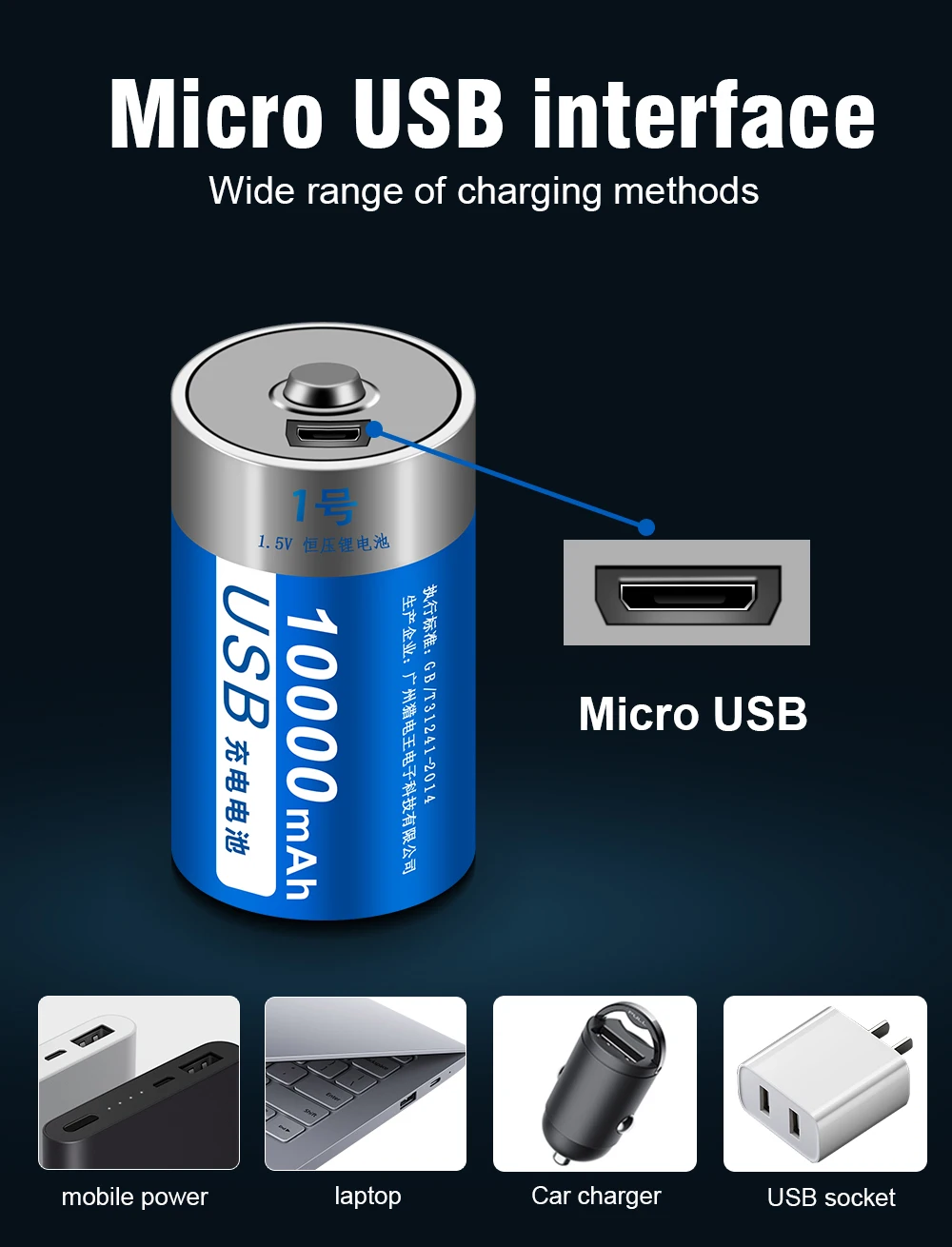 Внимание: Этот аккумулятор размера D можно заряжать только с помощью кабеля Micro USB. Другое зарядное устройство не может заряжать, Пожалуйста, знайте это!