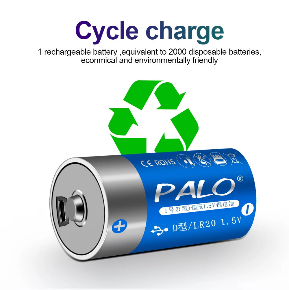 PALO 1,5 V D размер литий-ионная аккумуляторная батарея Micro USB 1,5 V D Тип R20 литиевые батареи для фонарика водонагреватель газовые печи
