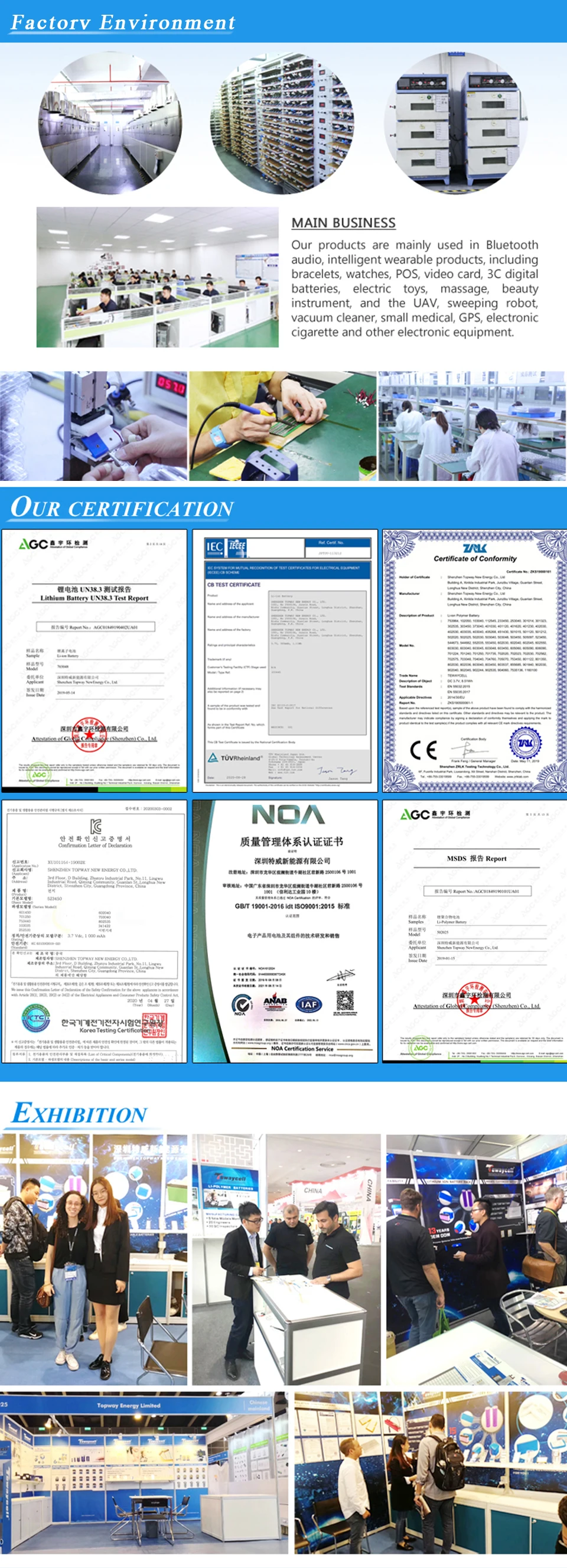 2. Мы проводим испытания на безопасность, испытания на жизненный цикл, балансирующее напряжение и внутреннее сопротивление на всех батареях.