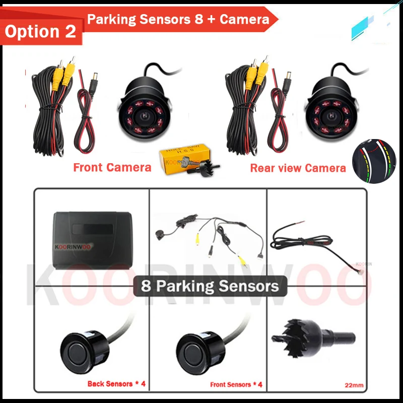 8 датчиков, двухъядерный, Автомобильная камера заднего вида, Система помощи при парковке, звуковая сигнализация. Изображение заднего хода автомобиля и расстояние фронтальной камеры могут отображаться на мониторе автомобиля.