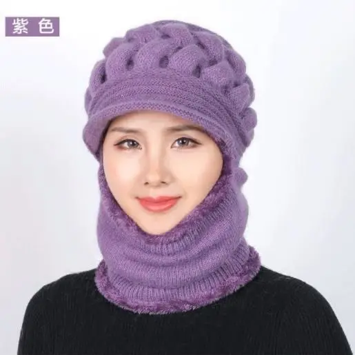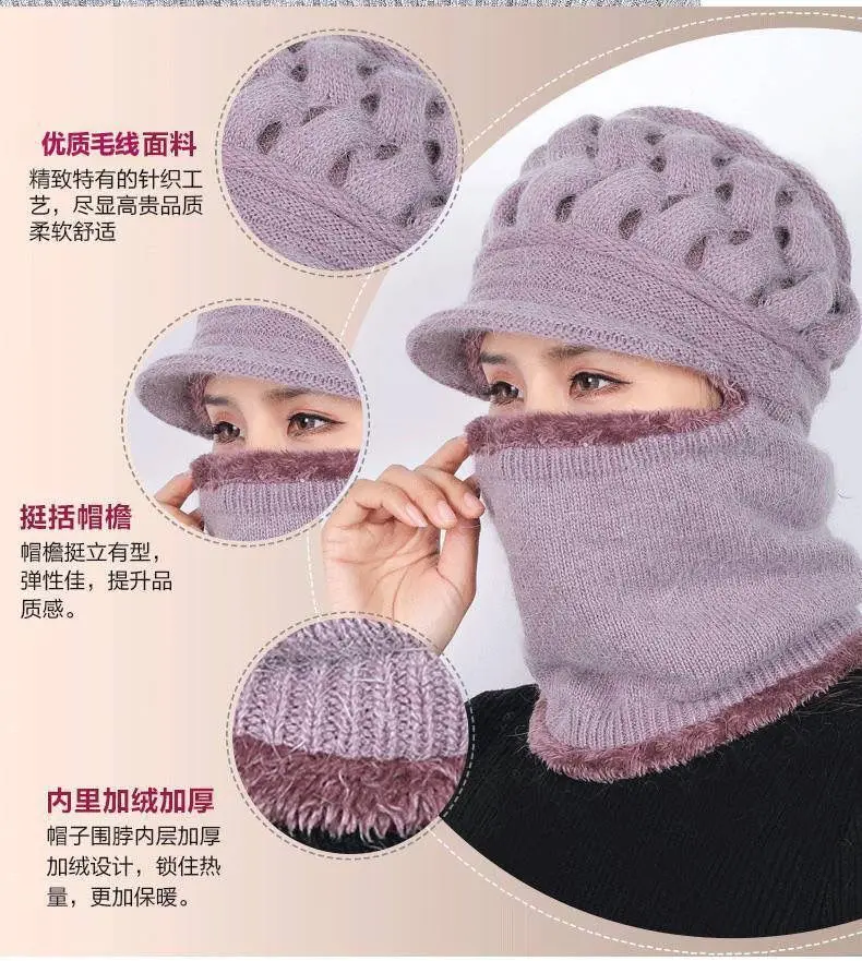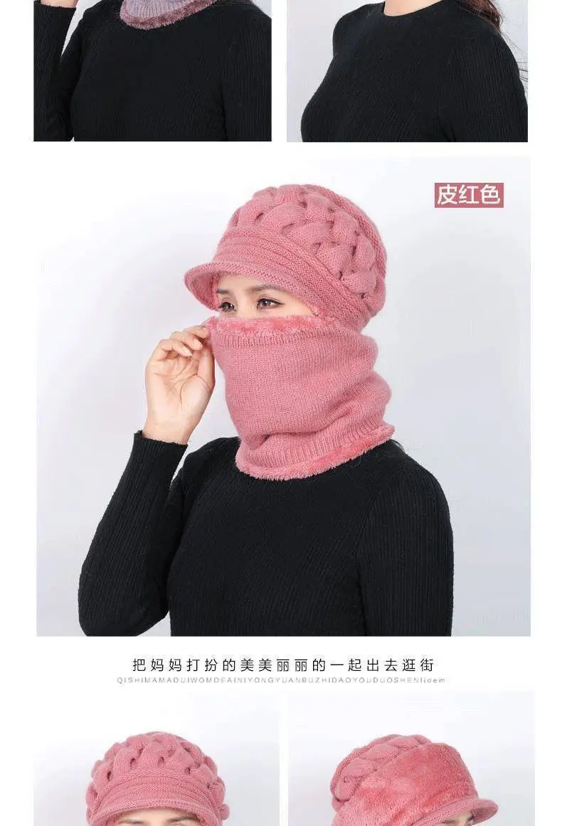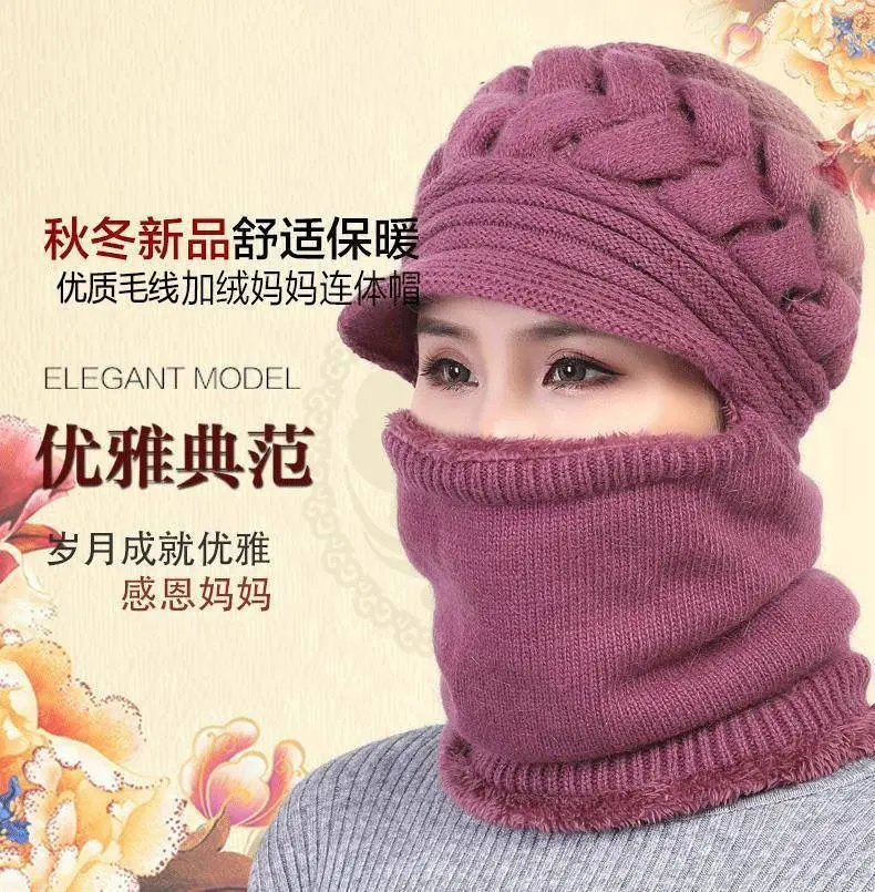 Шапки, для женщин среднего и пожилого возраста, Зимние Повседневные утолщенные шерстяные шляпы, плюс бархатный теплый шарф, шапки для мам и детей, цельные вязаные шапки