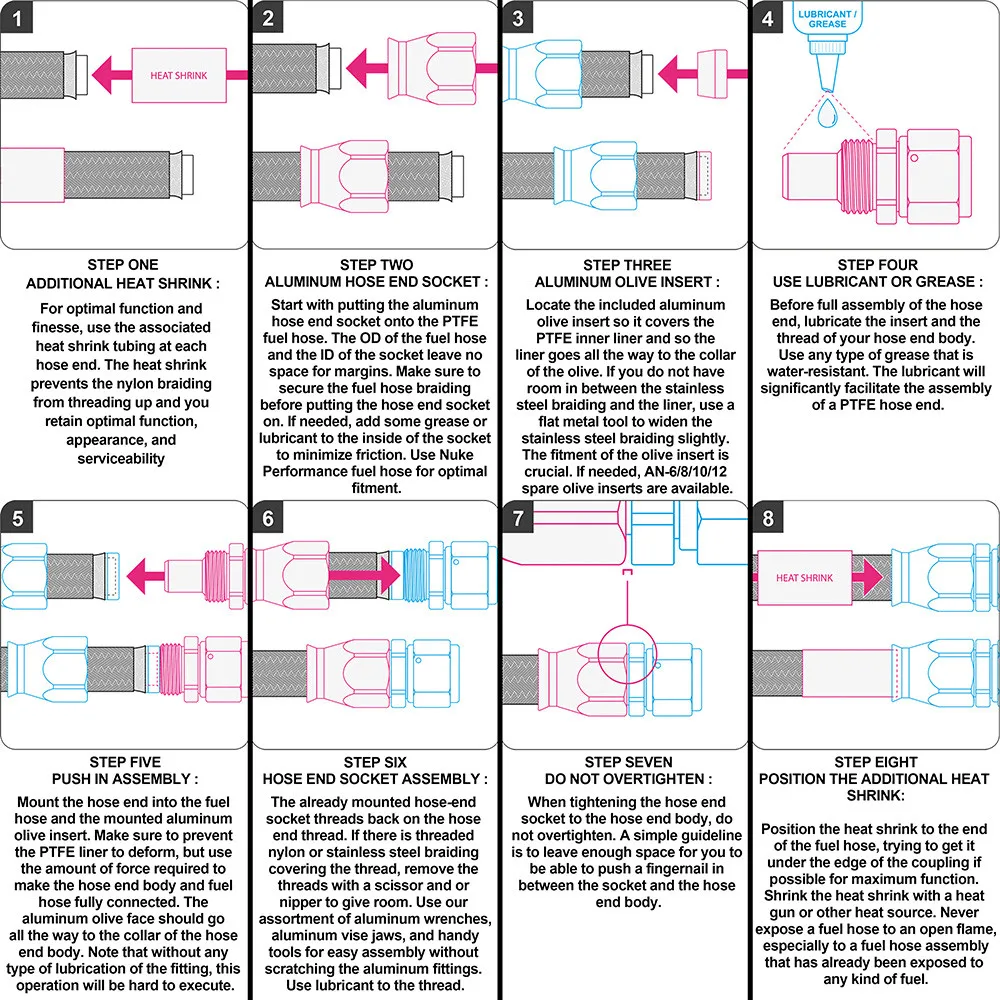 Фитинги для шланга из ПТФЭ механически зажимаются на сердечник шланга из ПТФЭ, чтобы обеспечить максимальное уплотнение