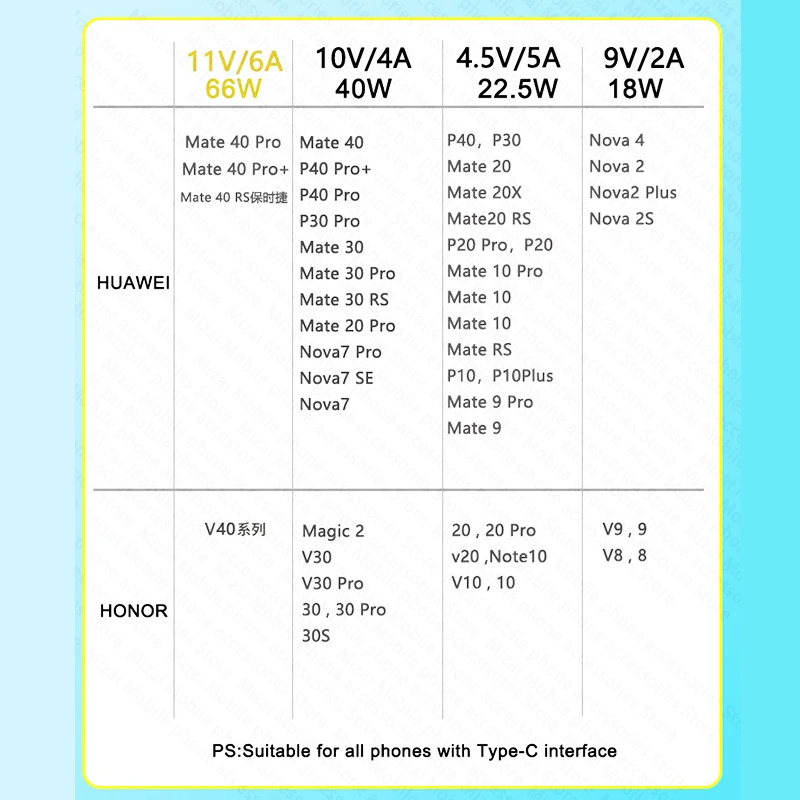 Оригинальный ЕС/США/Великобритания Huawei 11V 6A USB супер быстрое зарядное устройство Supercharge 6A Type C кабель для P30 P40 P50 Mate 40 Magic 3 Honor 60 pro
