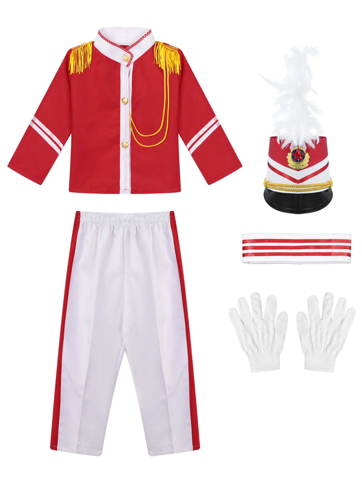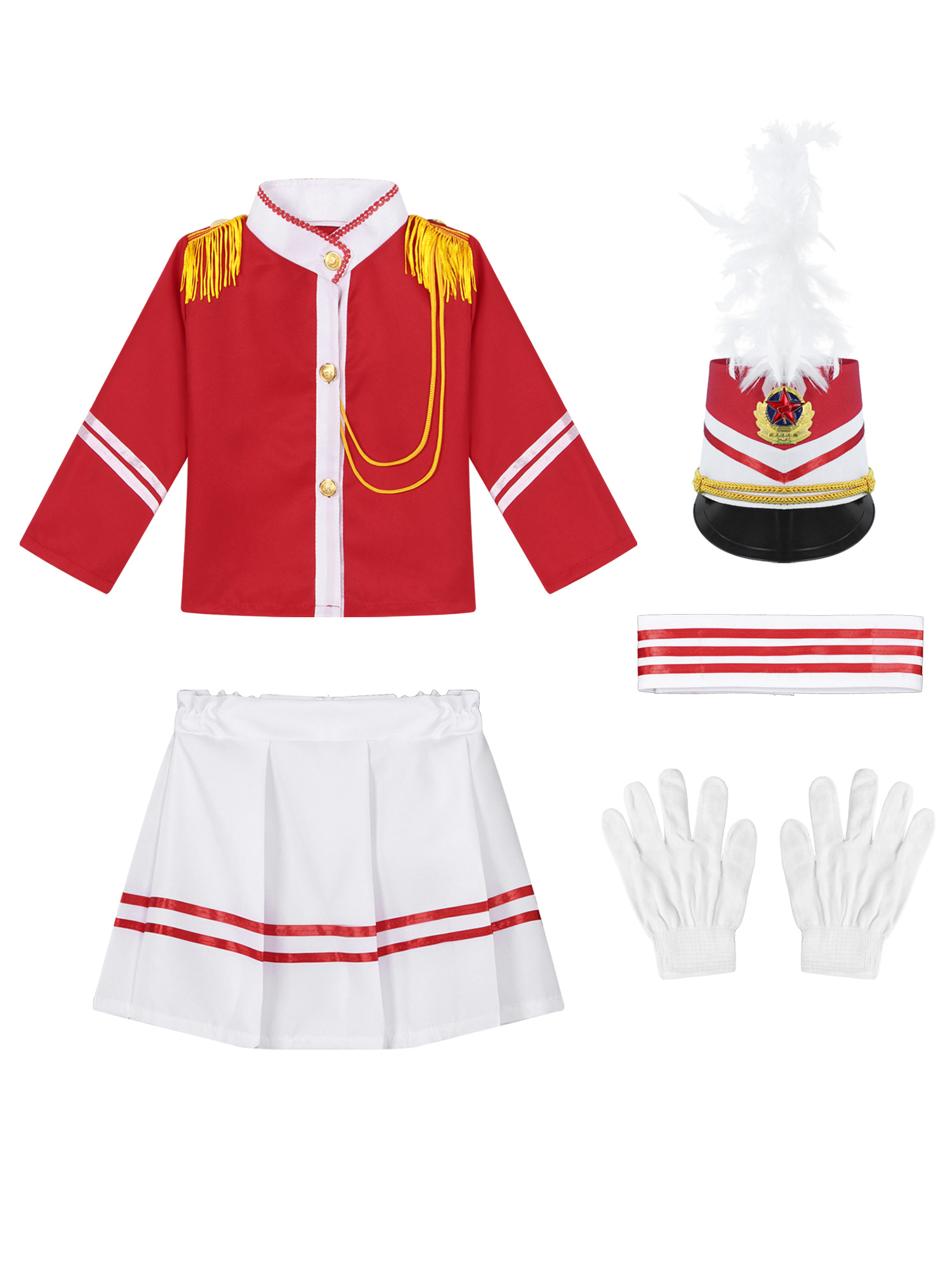 Детский костюм унисекс с барабаном и трубой, униформа для Honor Guard, костюм для выступлений, топы со штанами, плиссированная юбка и аксессуары.