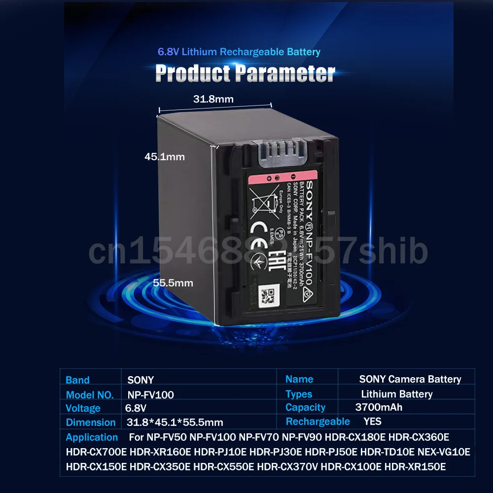 Аккумулятор камеры Sony 6,8 V NP-FV100 NP FV100 NPFV100 3700mAh для FV30 FV50 FV70 FP50 FP90 FP91 AX100E FDR-AX10