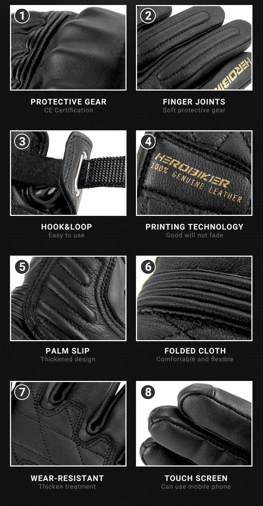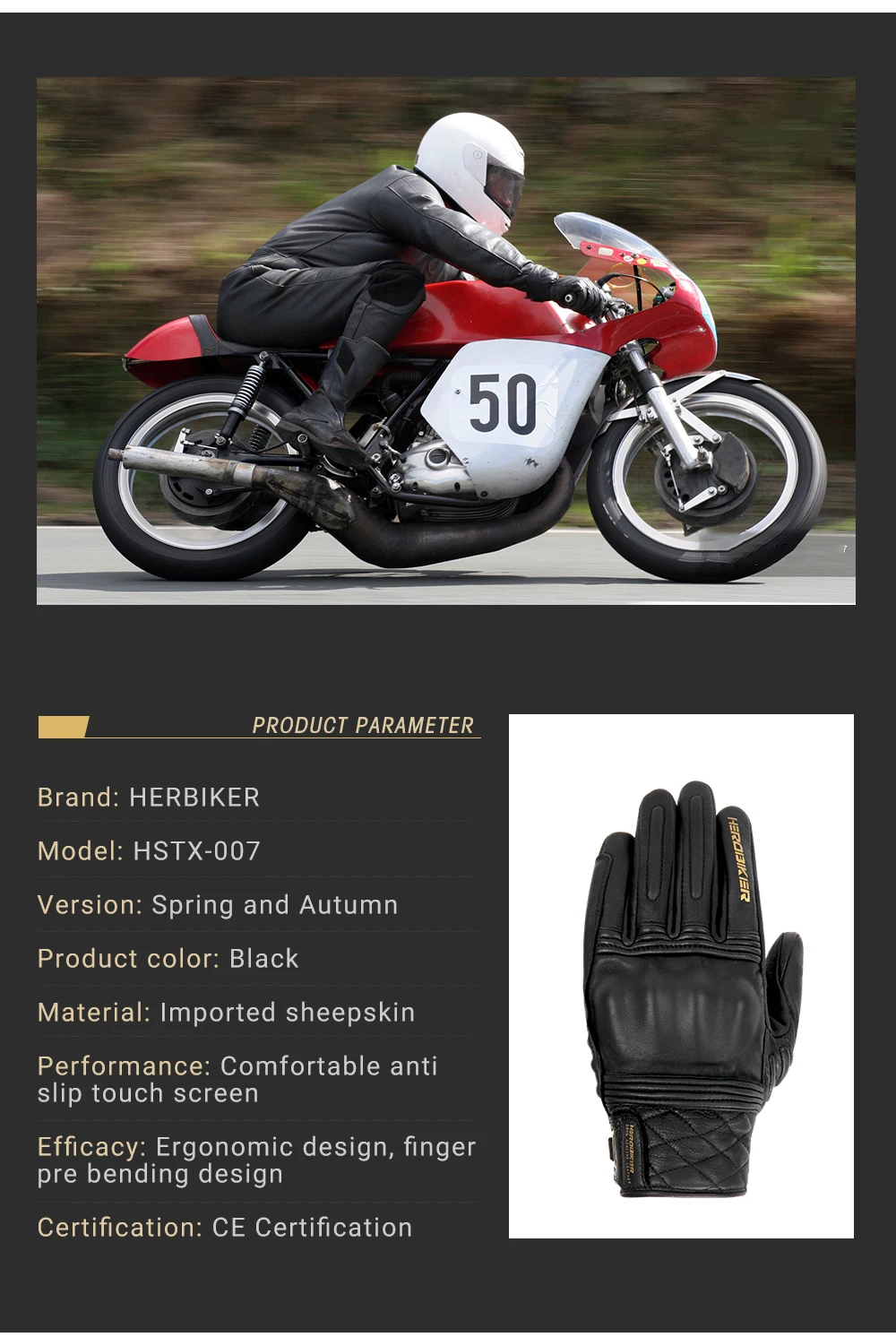 1 пара кожаных перчаток для мотоцикла