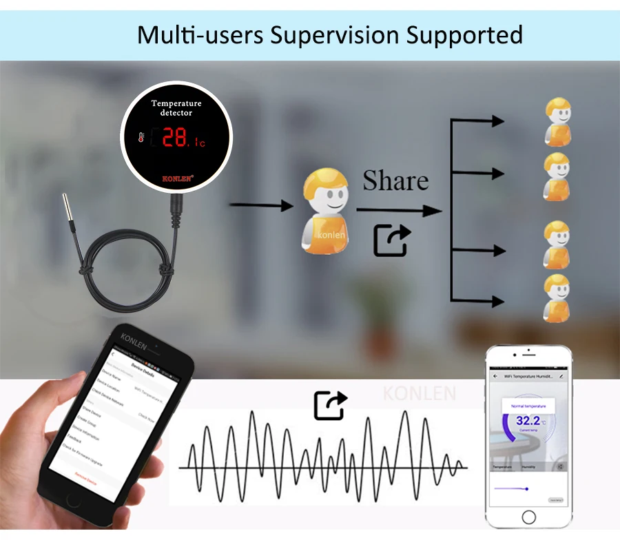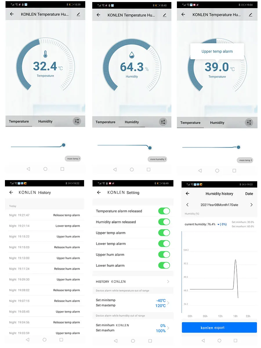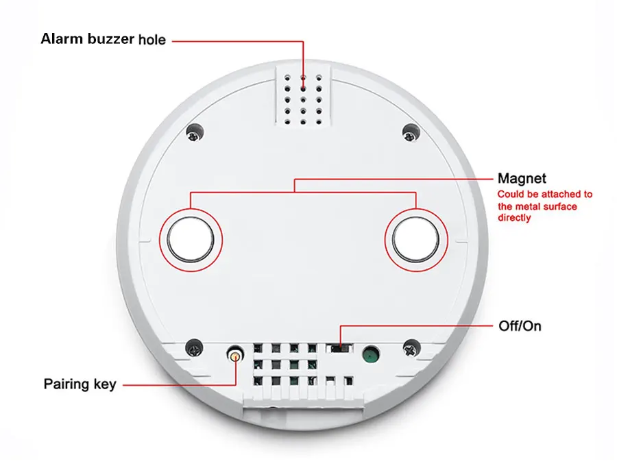 If the temperature is higher or lower than the range of temperature you preset . The detector will push the alarm alerts to app and at the same time the detector will make buzzer sound to remind of you control the temperature. And you can do the real-time temperature supervision via app remotely.