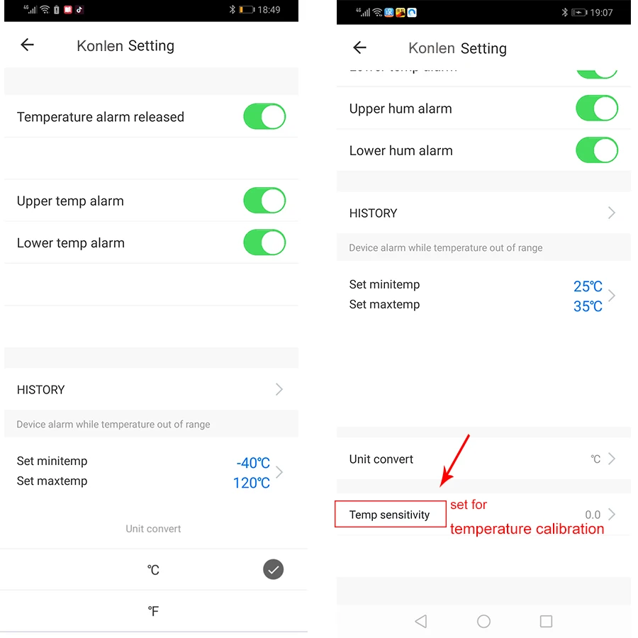 Measurement error: ±1℃, the temperature can be calibrated via App.