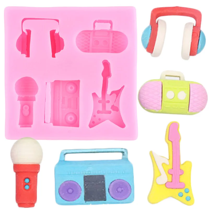 Радио микрофон гитара силиконовая смола плесень Музыка Примечание инструменты для украшения тортов из мастики кекс «сделай сам» Топпер шоколадные конфеты формы