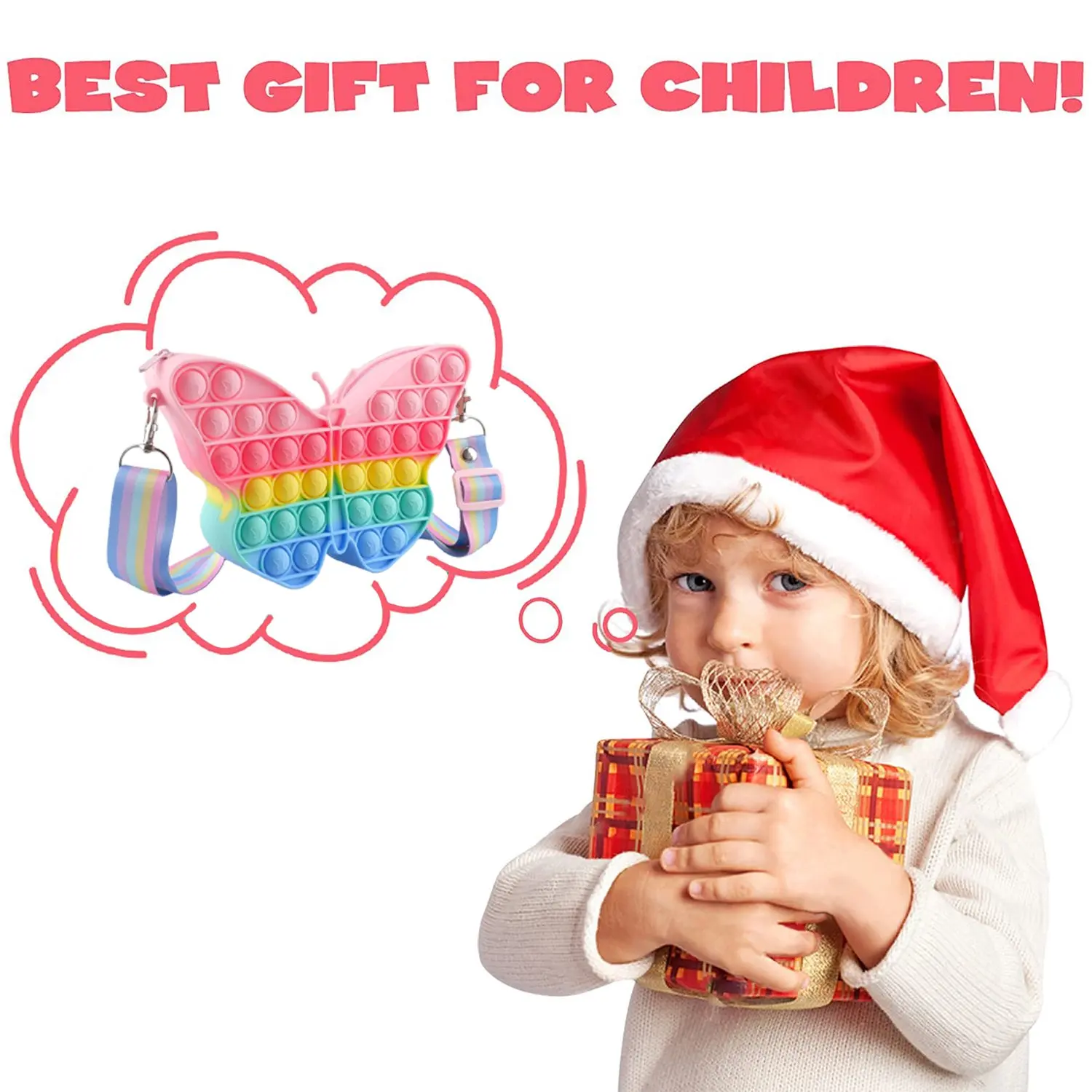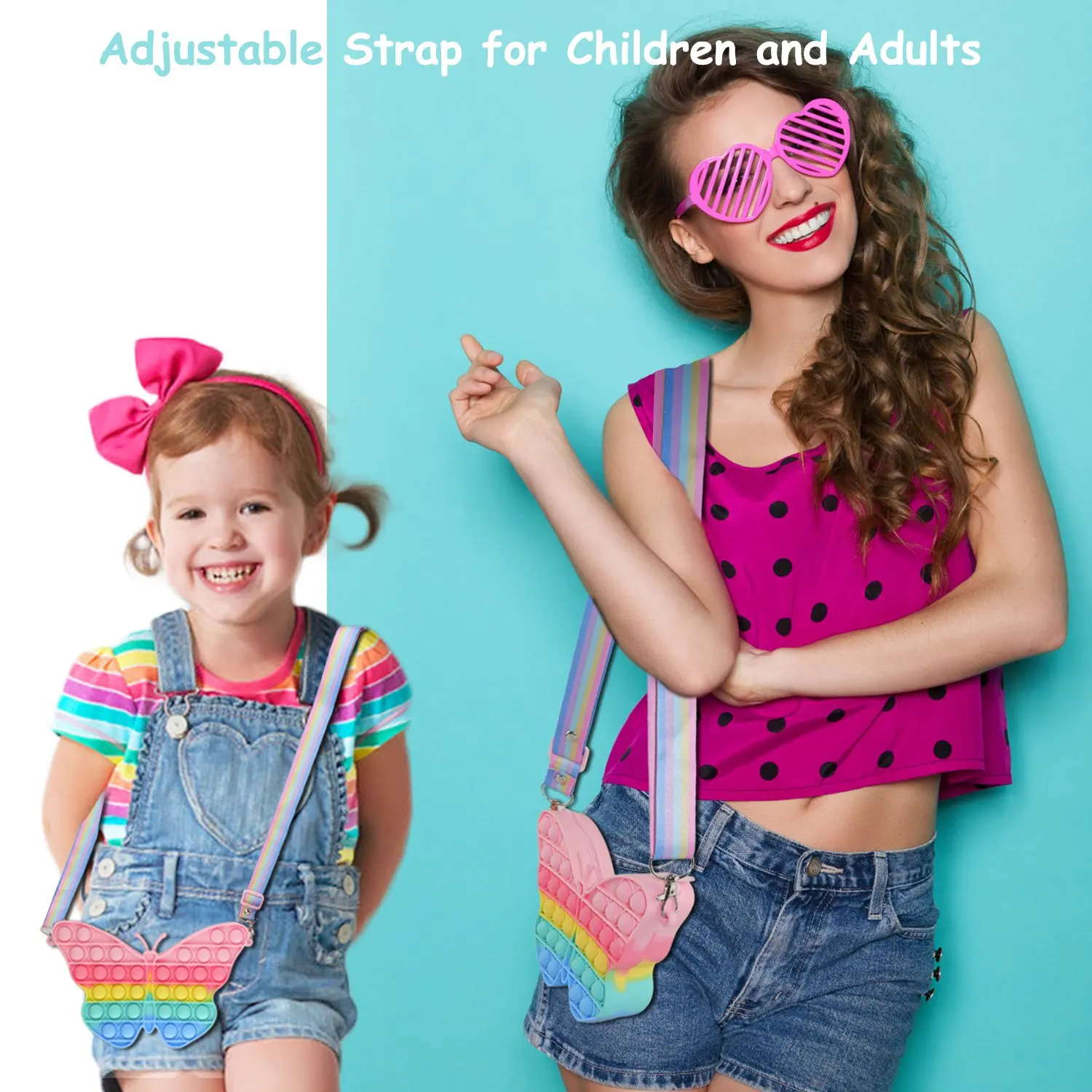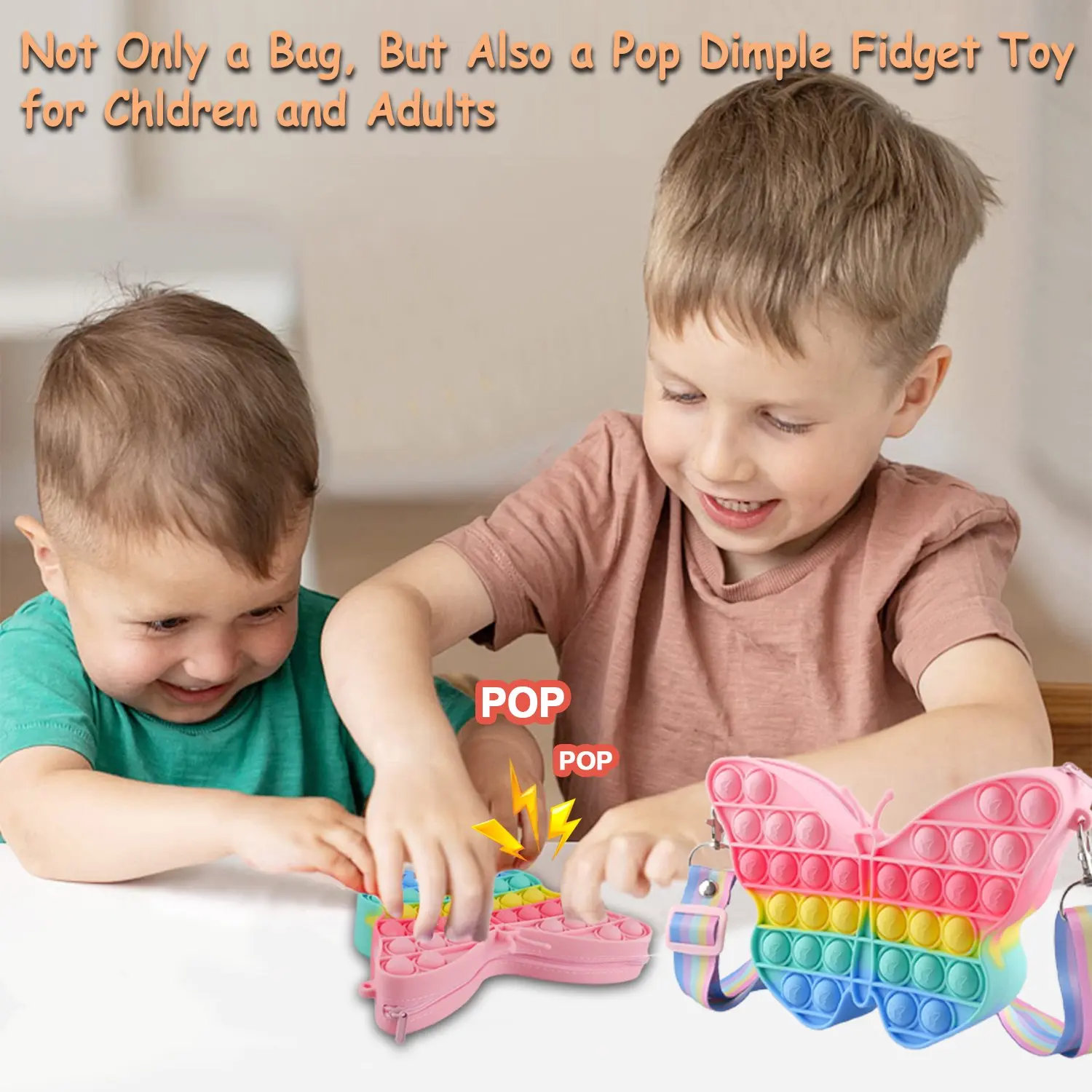 【Регулируемый плечевой ремень-Наплечный ремень для игрушек pop fidget-это сумочка для девочек, которая может быть скорректирована на соответствующую длину по желанию для детей и взрослых, в то время как молния гладкая и не легко повредить. Каждый пузырь поп-сумки имеет рельефный узор бабочки, изысканный и милый.