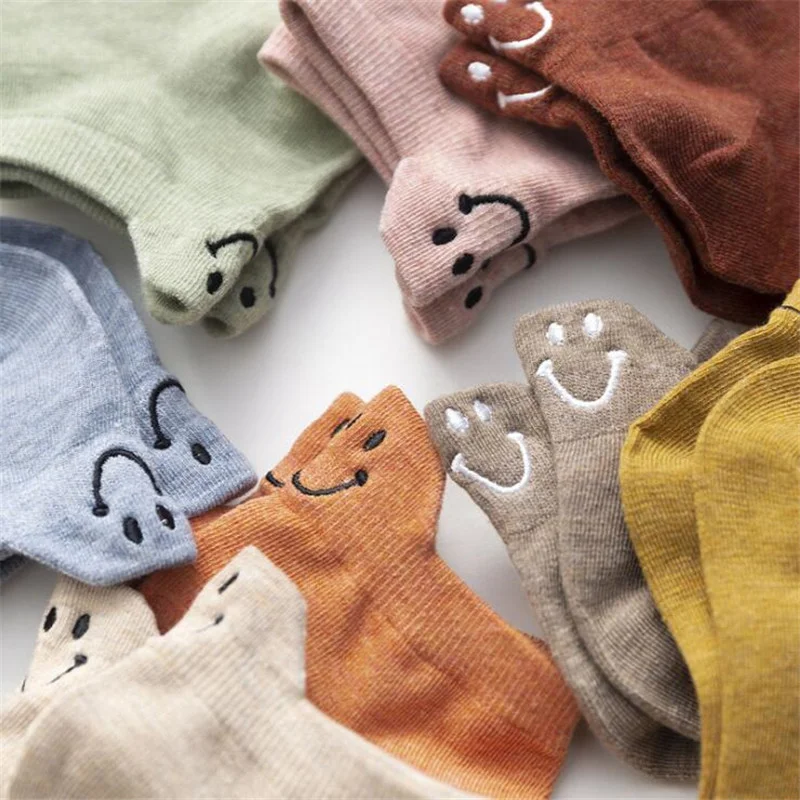 3 пары в партии, женские короткие носки со смайликом, весенне-летние женские хлопковые милые забавные носки с вышивкой, набор носков по щиколотку