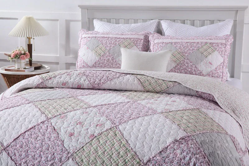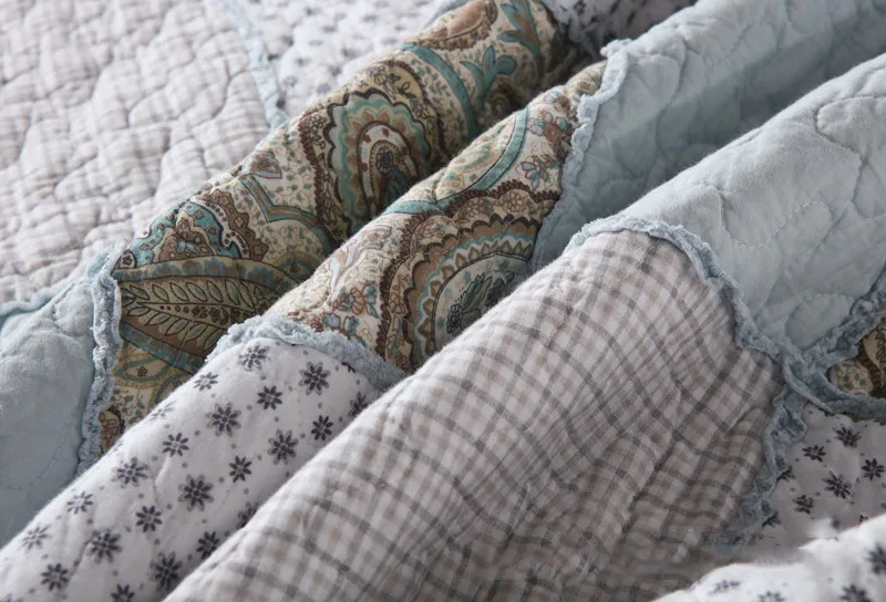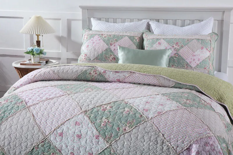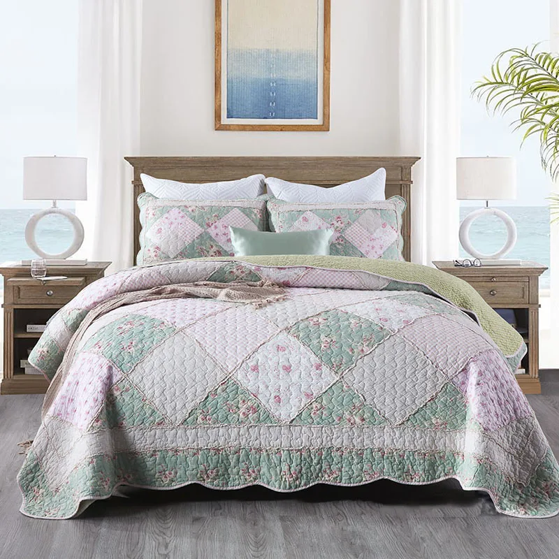 Корейский стиль набор Стёганое Одеяло 3 шт постельные принадлежности помытое Хлопковое одеяло для двойной кровати стеганое лоскутное покрывало с цветочным принтом покрывало для кровати наволочка король королева размер покрывало летнее одеяло