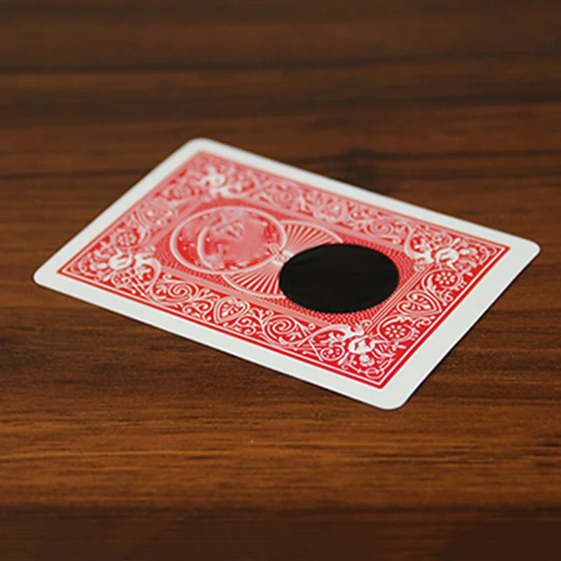 Волшебник показывает синюю заднюю карту. Зрители могут четко видеть, что в карте есть отверстие. Когда волшебник волнеет рукой, карта превращается в красную!