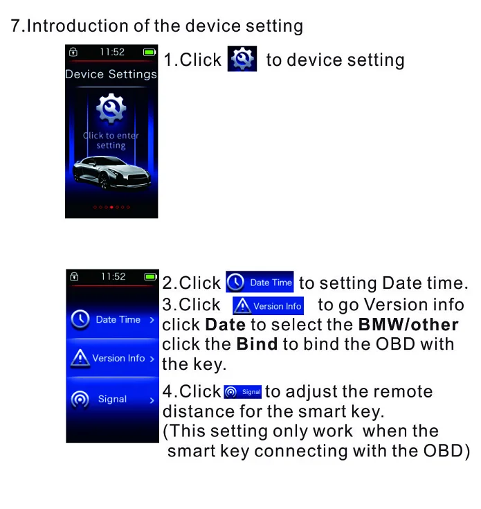 4. Нажмите «Singnal», чтобы отрегулировать Удаленное Расстояние для смарт-ключа.