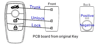 Примечание: Если ваш оригинальный ключ не имеет функции пуска одной кнопки, это не влияет на работу. Пока ваша плата может поместиться в ключ, она должна работать. Но функция зависит от функции вашего ключа.