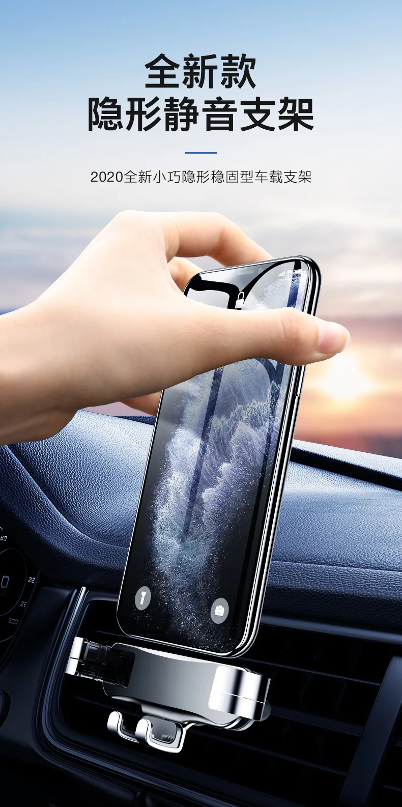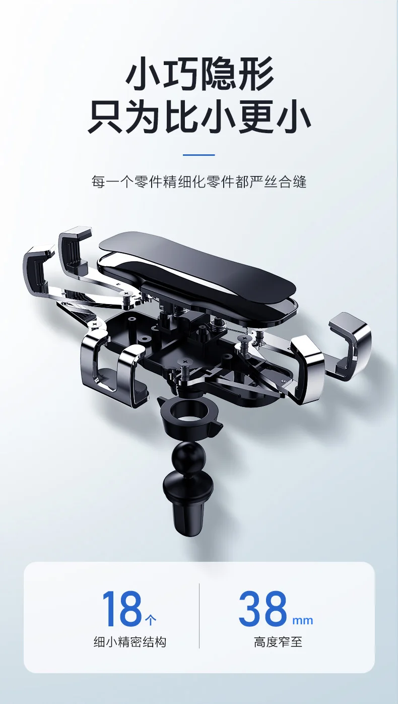Дизайн: инновационный дизайн, гравитационная связь и треугольная поддержка, автоматически зажимается, когда телефон надевается на держатель, устойчивый и стабильный, отпустите автоматически, когда снимите телефон с держателя, легко и удобно. Прочная и хорошо Защитная: Высококачественная резка из алюминиевого сплава, поверхностное окисление, Для крепления на автомобиле используется эластичный и противоскользящий зажим, плотно удерживающий вентиляционное отверстие, мягкие резинки на вентиляционном отверстии, чтобы не царапать устройства.