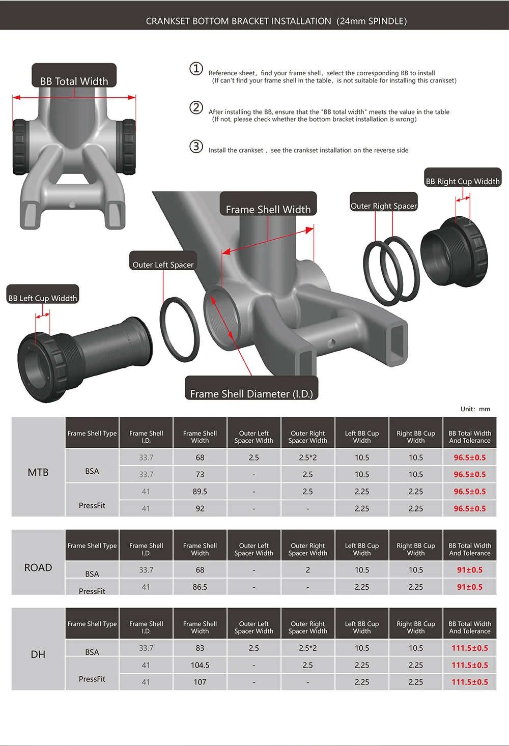 Поддержка ширины нижней оси: 68-73 мм