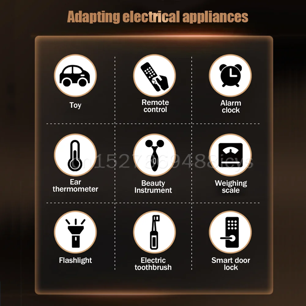 Used for portable tapes and TV remote controls,clocks and radios,video games,smoke alarms,PDAs,Flashlights,DVDs,MP3 and digita; cameras,cordless phones,electric toys