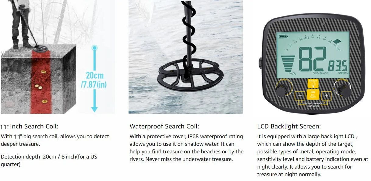 Подходит для поиска и тестирования металлических предметов, золотых и серебряных ювелирных изделий, монет, реликвий и т. д. независимо от того, являетесь ли вы начинающим охотником за сокровищами или опытным любителем обнаружения металла, вы можете легко использовать его.