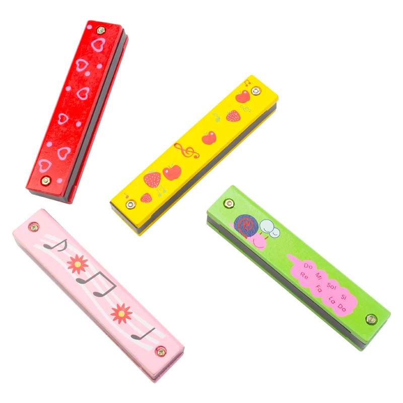 Развивающие музыкальные игрушки, 16 отверстий, Детские губные гармошки, деревянные двухрядные губные гармошки, милые Мультяшные игрушки для начинающих детей
