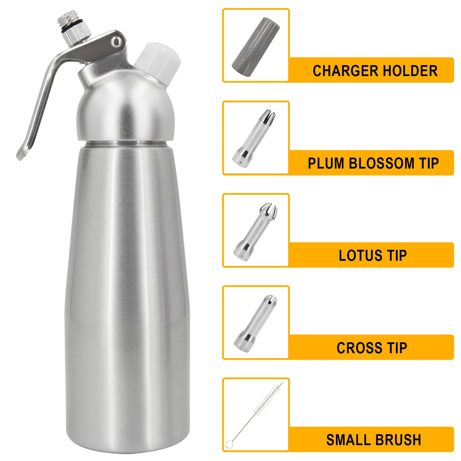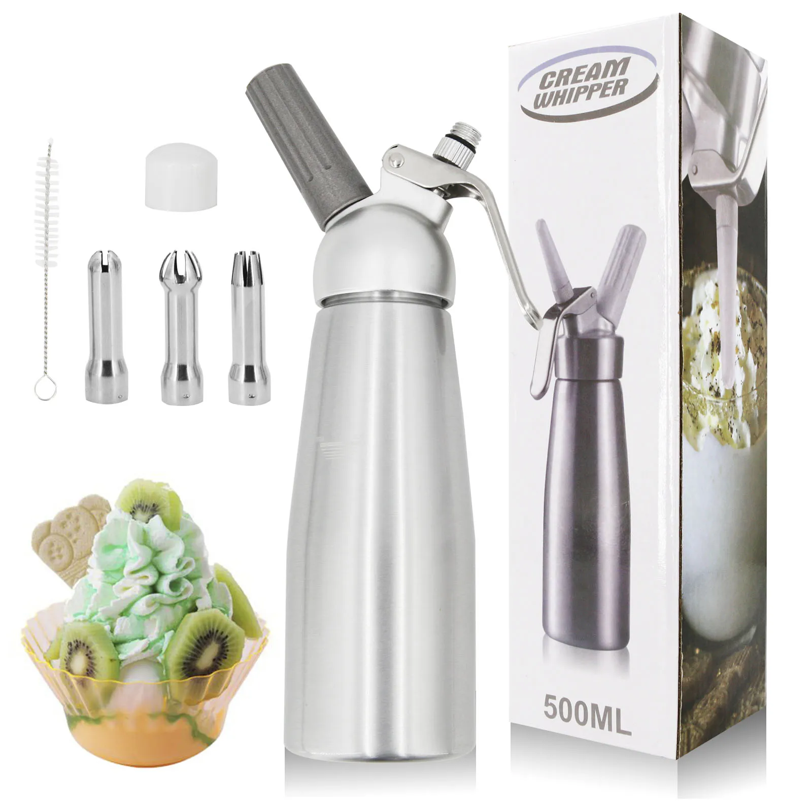 Дозатор для крема 500 мл, крем-сифон с 3 насадками из нержавеющей стали и 1 чистящей щеткой, создателем взбитых сливок, взбитыми сливками для вкусных взбитых сливок и десертов