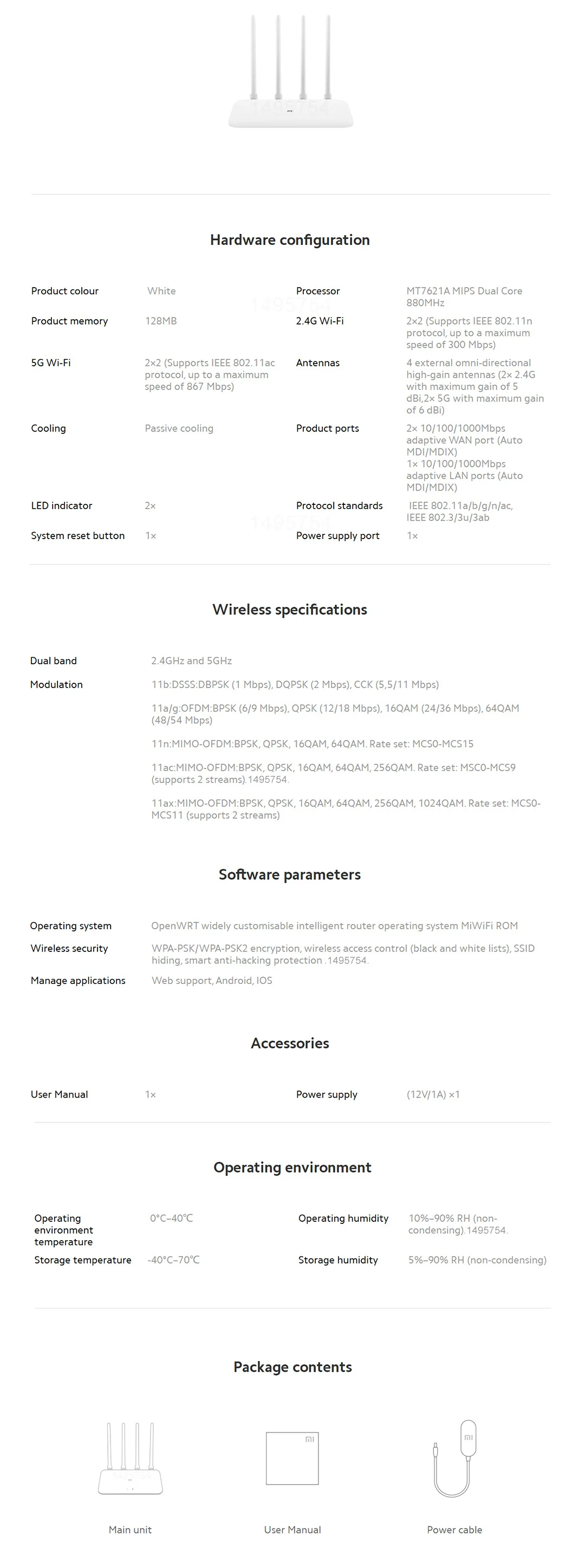 Xiaomi Mi роутер 4A Gigabit Edition 1000 М 2,4 ГГц Wi-Fi 5 ГГц ROM 16 Мб DDR3 64 Мб 128 Мб с высоким коэффициентом усиления 4 антенны удаленное управление приложениями