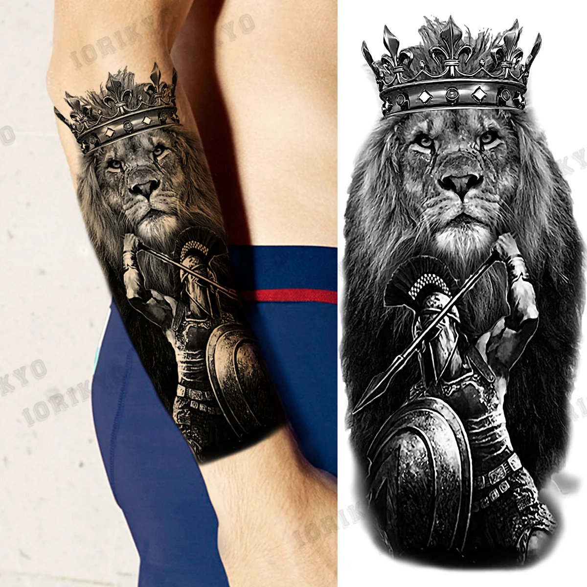 Временные татуировки для мужчин с изображением короны льва, тигра, компаса, розы, поддельные татуировки, реалистичные водонепроницаемые татуировки с половинным рукавом