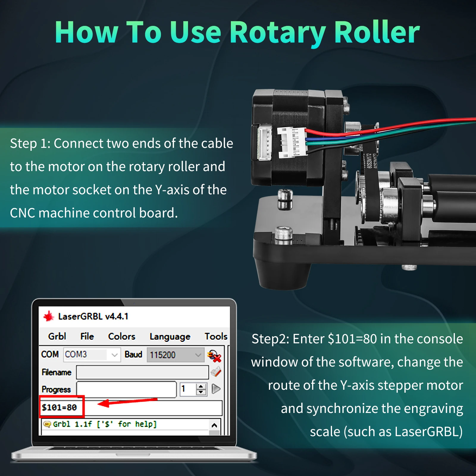 Простая установка:Подключите кабель вращающегося вала к порту кабеля на гравировальной машине для начала работы, что удобно и просто