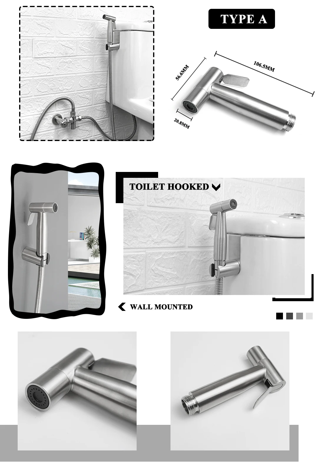 Унитаз биде опрыскиватель набор ручной держатель из нержавеющей стали матовый биде для ванной крюк для бака Shattaf клапан струи портативный биде кран