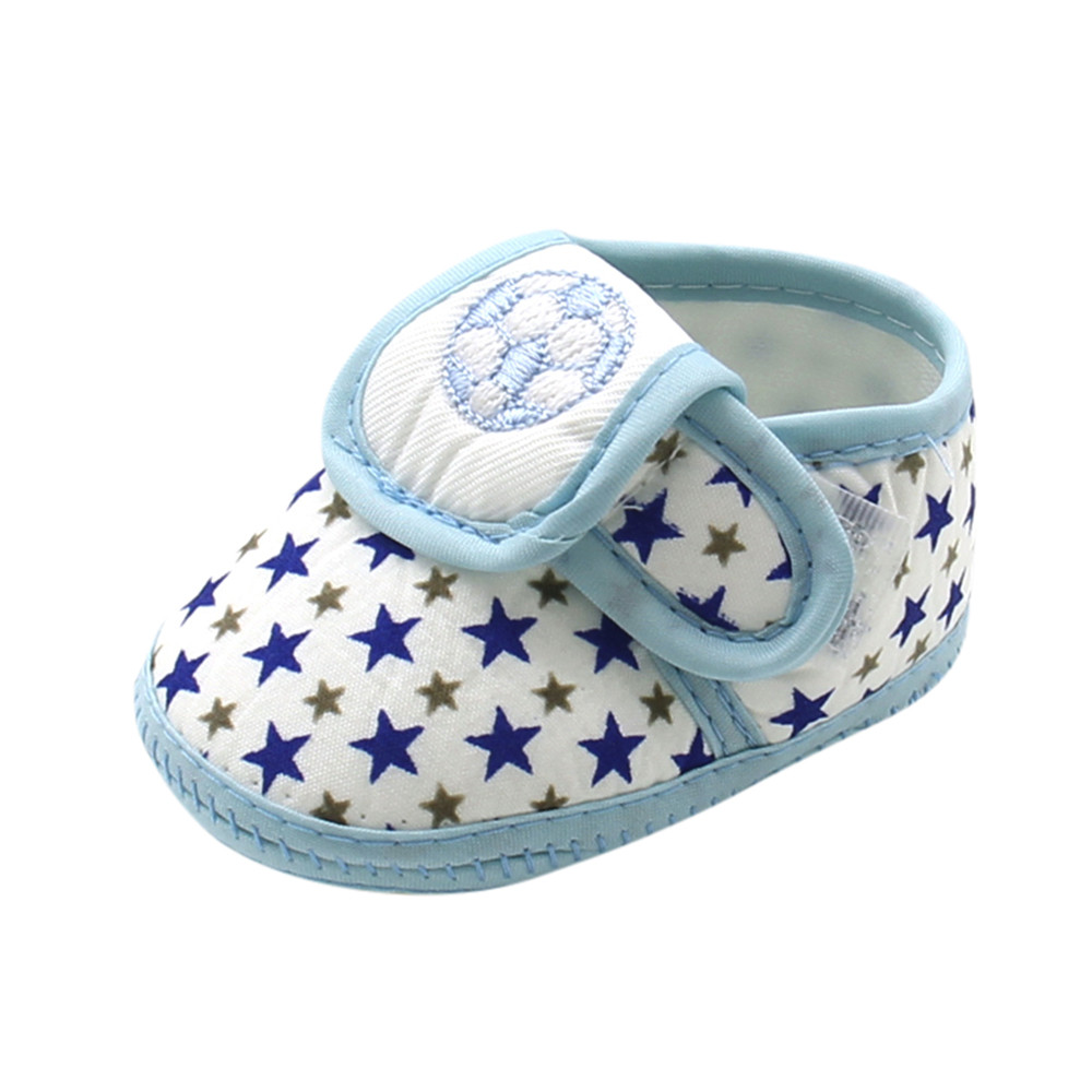 Новорожденный младенецДля маленьких девочек со звездами Обувь для мальчиков, на мягкой подошве Предуокер теплый Повседневные туфли на плоской подошве