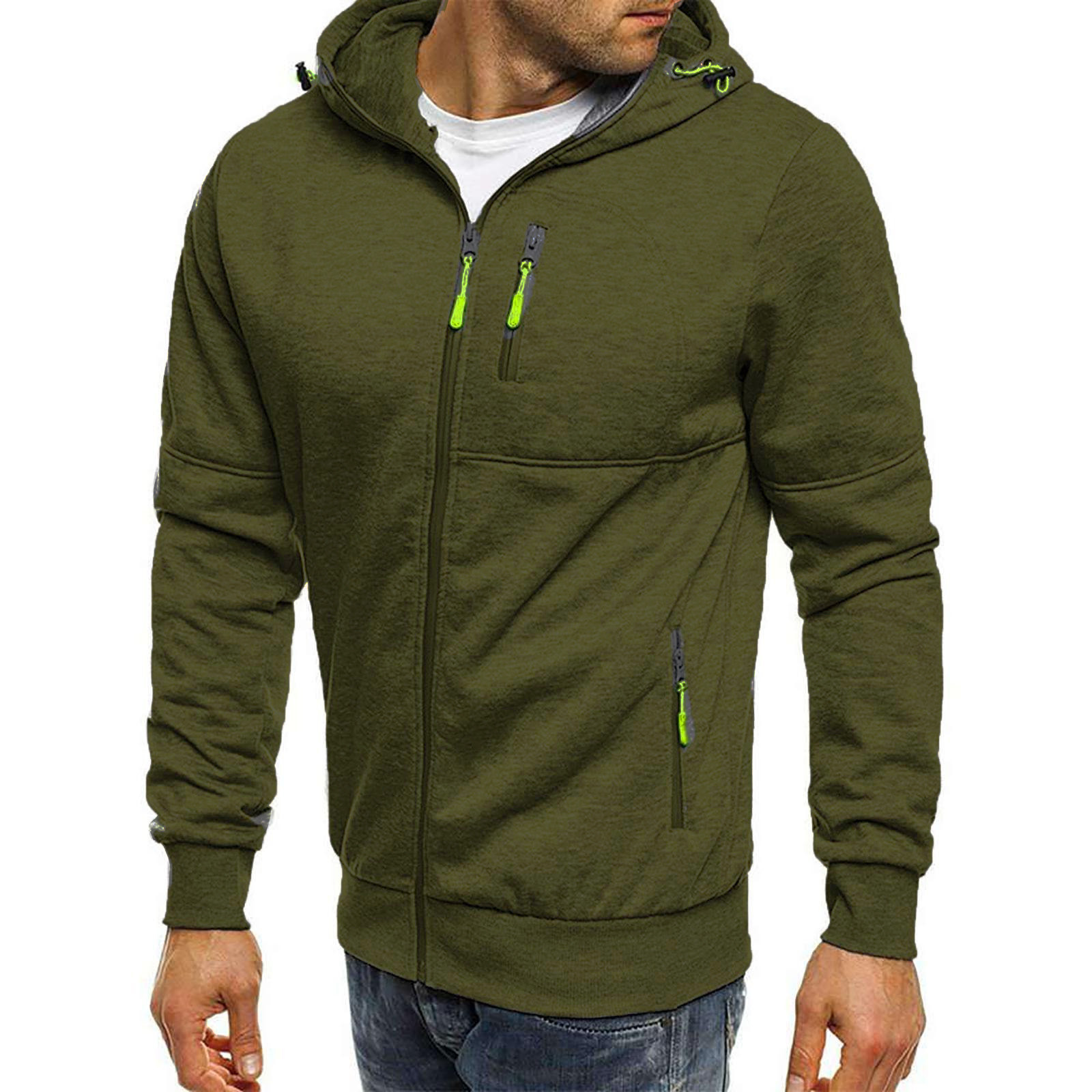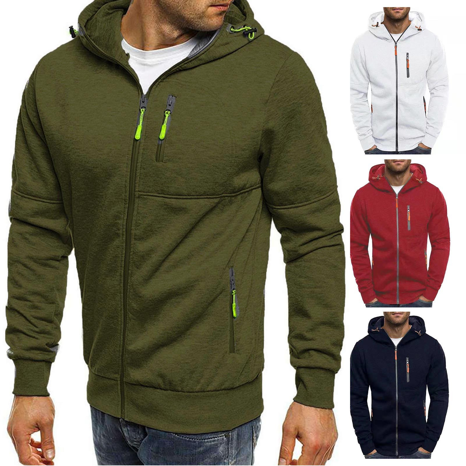Весна и осень Новый мужской однотонный кардиган с капюшоном флисовое повседневное пальто